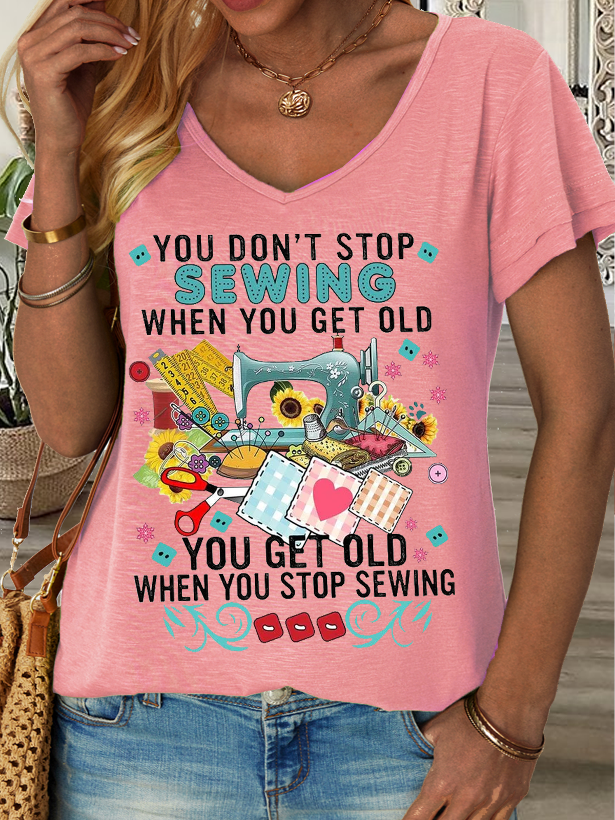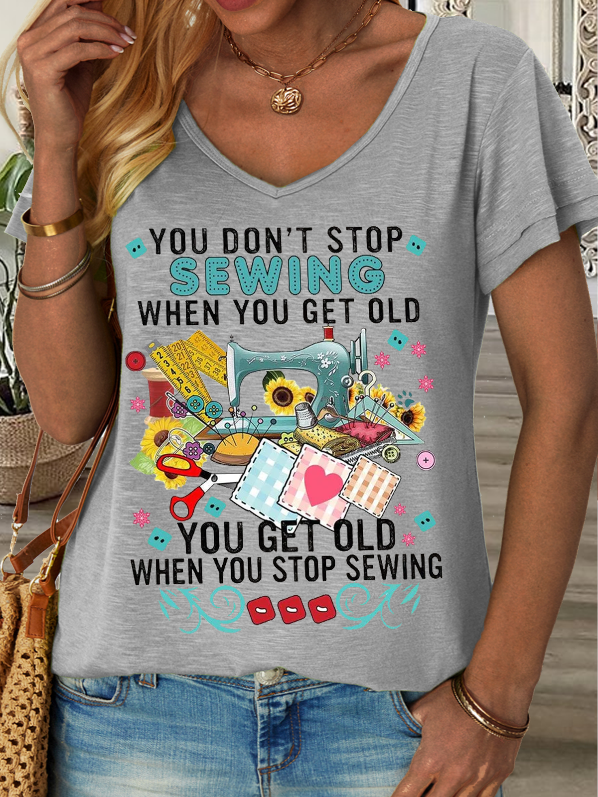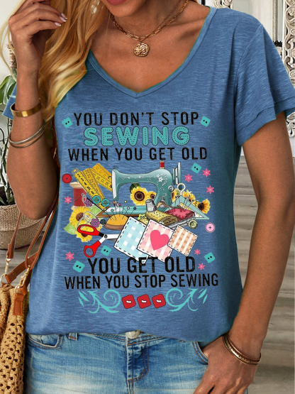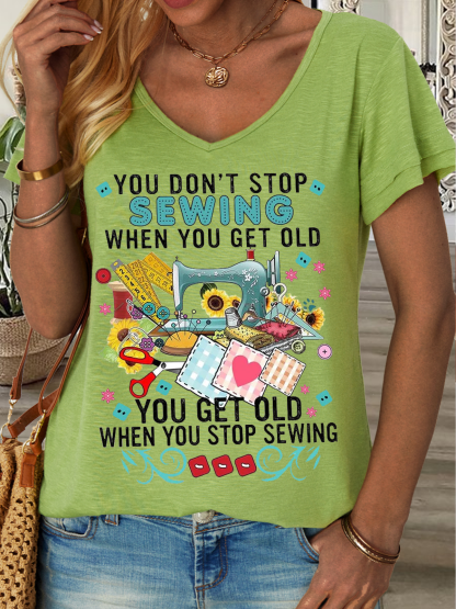 Women‘s Funny Word You Don't Stop Sewing When You Get Old Text Letters Loose Simple T-Shirt