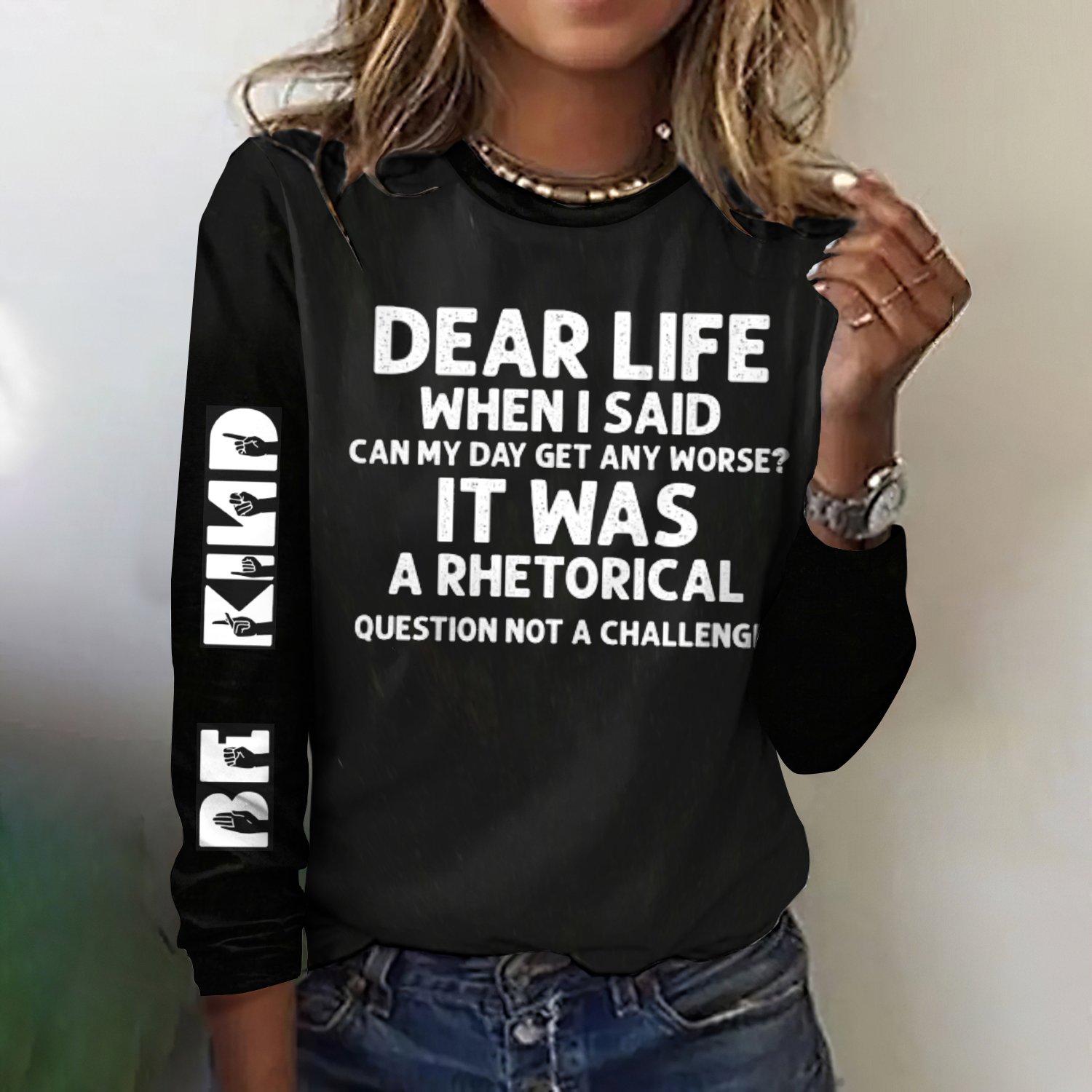 Text Letters Casual Crew Neck T-Shirt