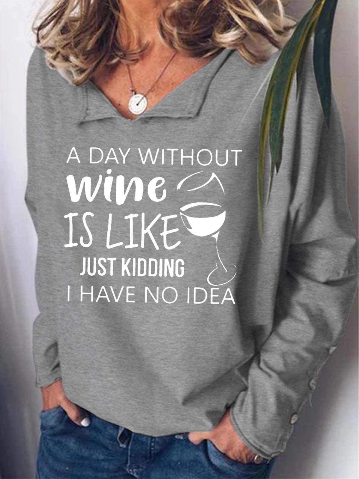 Women A Day Without Wine Casual Shawl Collar Text Letters Sweatshirt