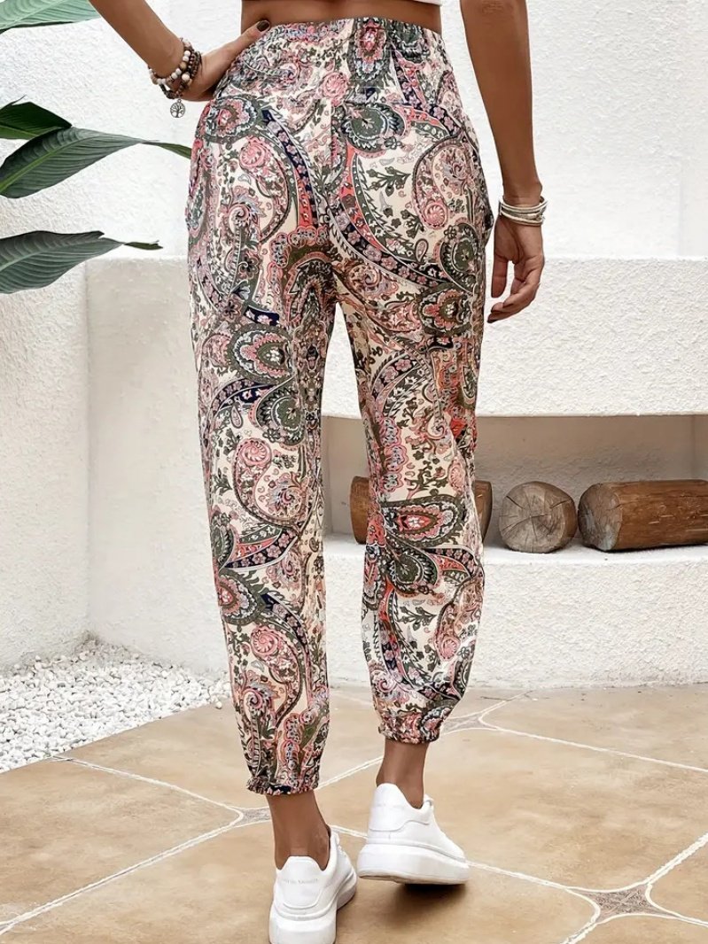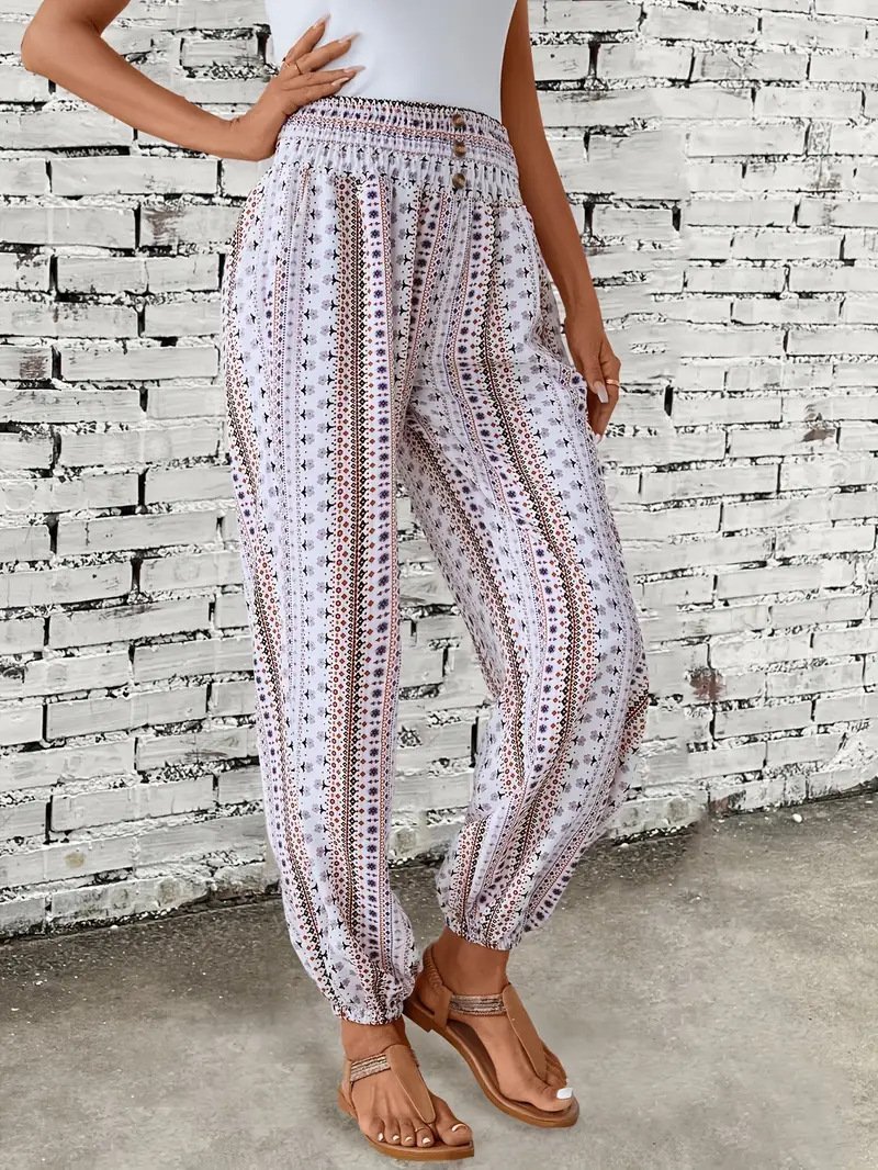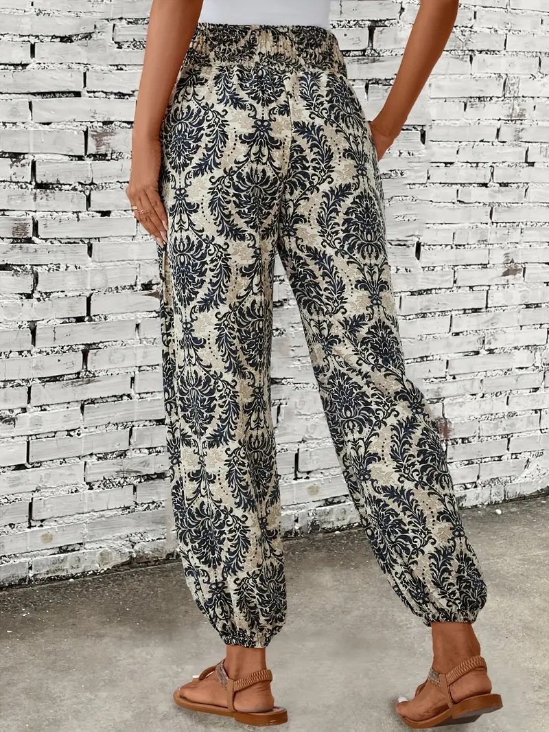 Women's Elastic Waist H-Line Ankle Banded Pants Daily Going Out Pants Navyblue Casual Split Joint Geometric Spring/Fall Pants