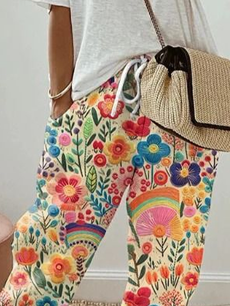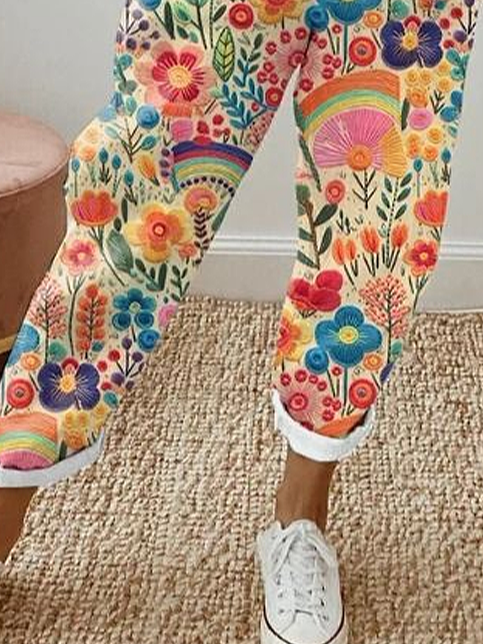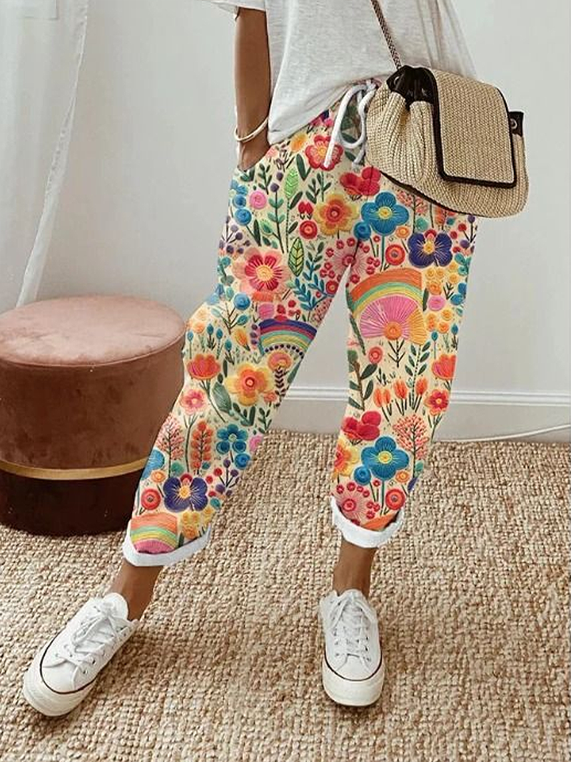 Women's H-Line Straight Pants Daily Going Out Pants As Picture Casual Printing Floral Spring/Fall Pants