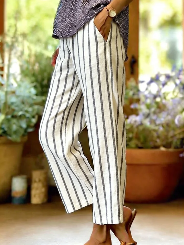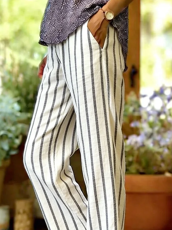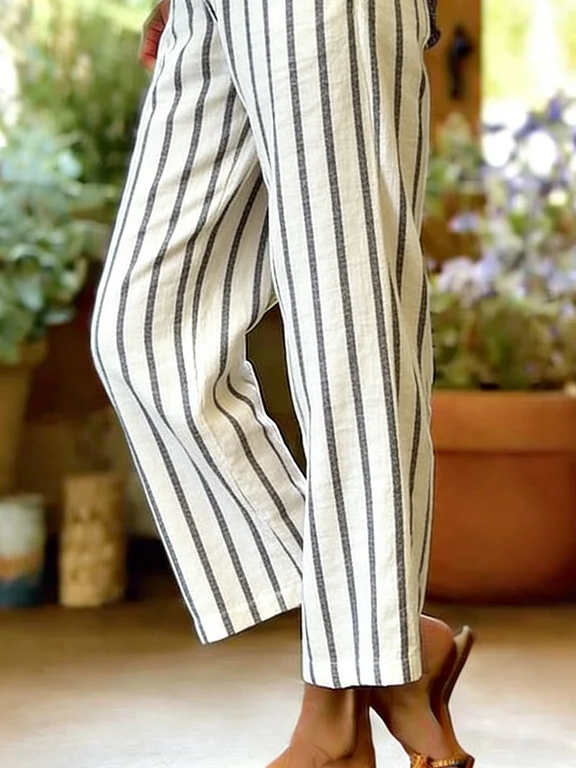 Women's H-Line Straight Pants Daily Going Out Pants White Casual Printing Striped Spring/Fall Pants