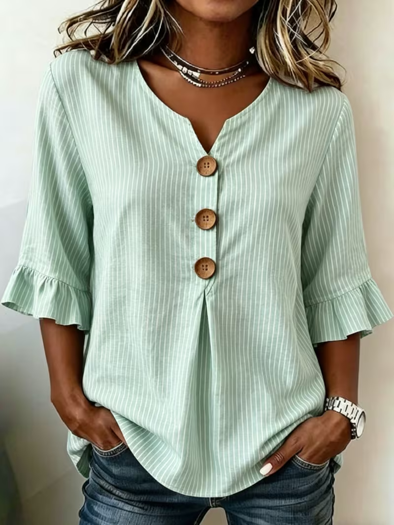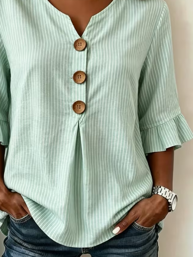 Women's Half Sleeve Blouse Summer Green Striped Printing V Neck Daily Going Out Vintage Top