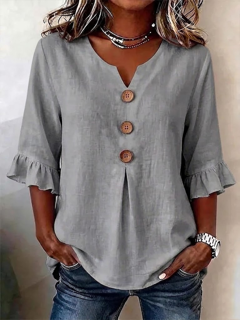 Women's Half Sleeve Blouse Summer White Plain Peplum V Neck Daily Going Out Vintage Top
