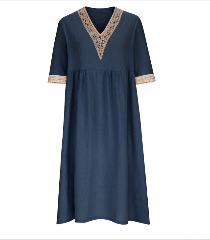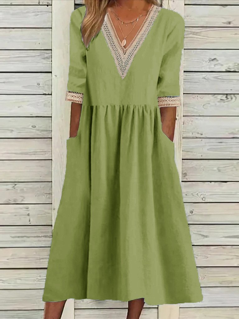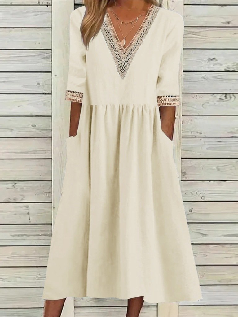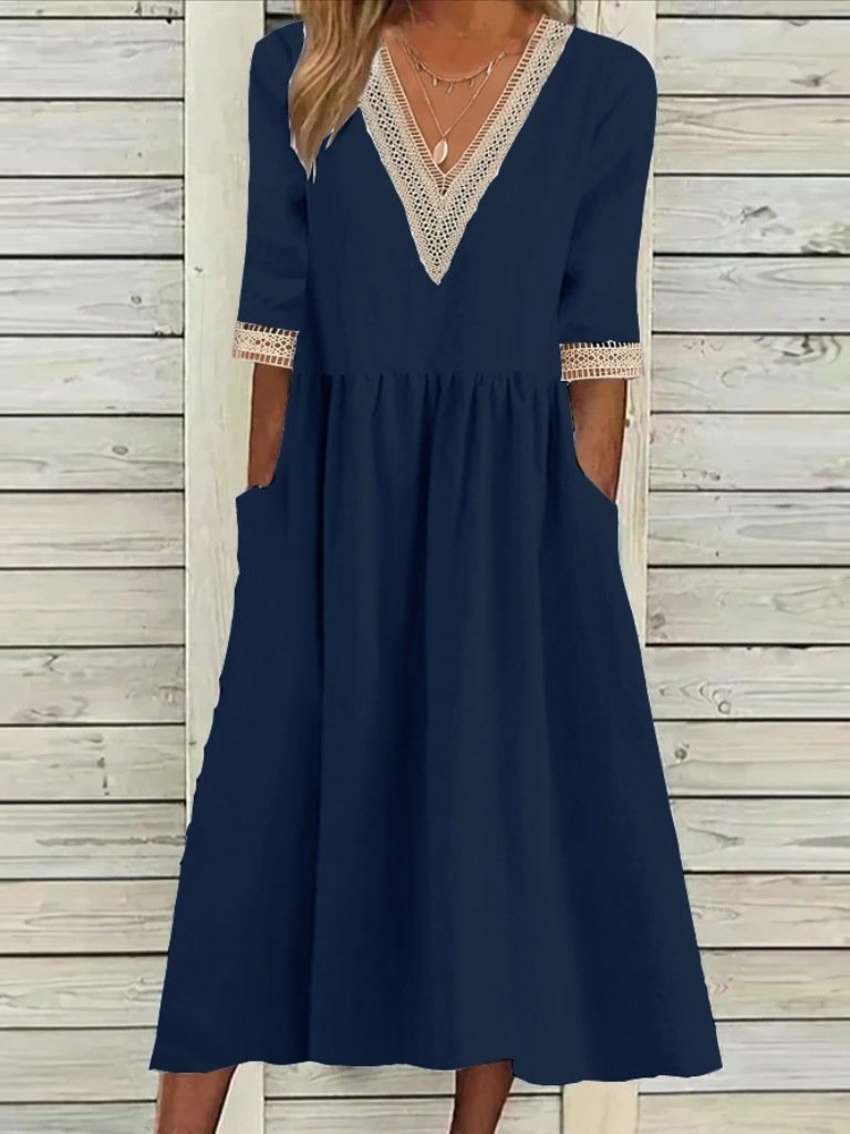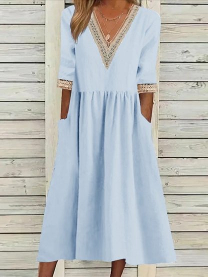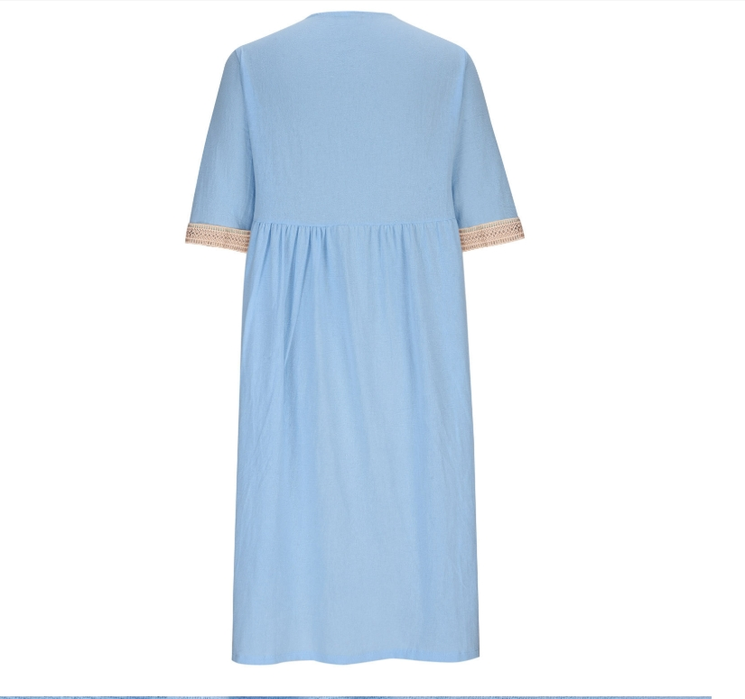 Women's Half Sleeve Summer Light Blue Plain Split Joint V Neck Daily Going Out Casual Maxi A-Line Fit & Flare Dress Dress