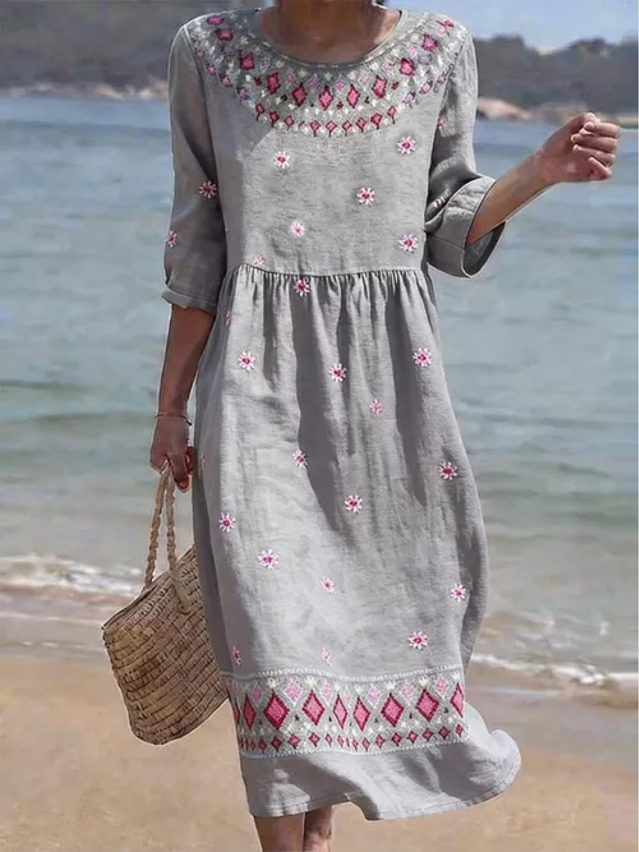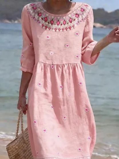 Women's Half Sleeve Summer Pink Abstract Printing Crew Neck Daily Going Out Casual Maxi H-Line Dress