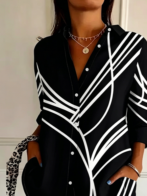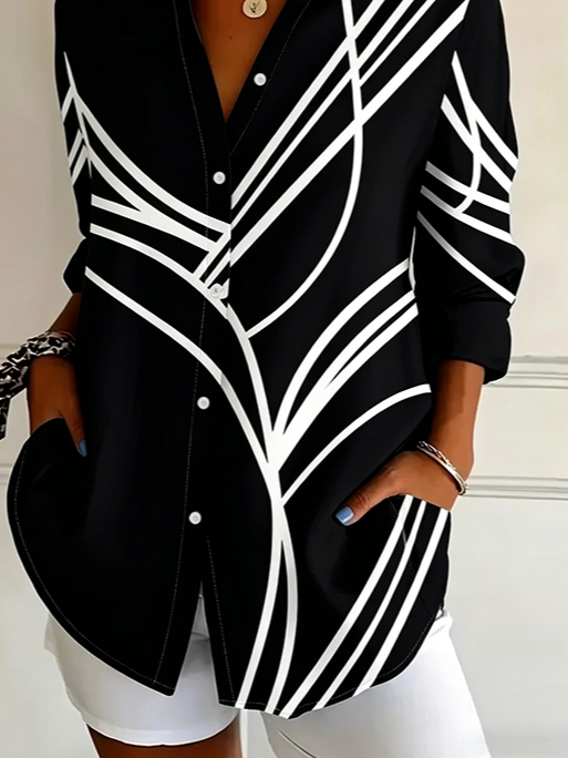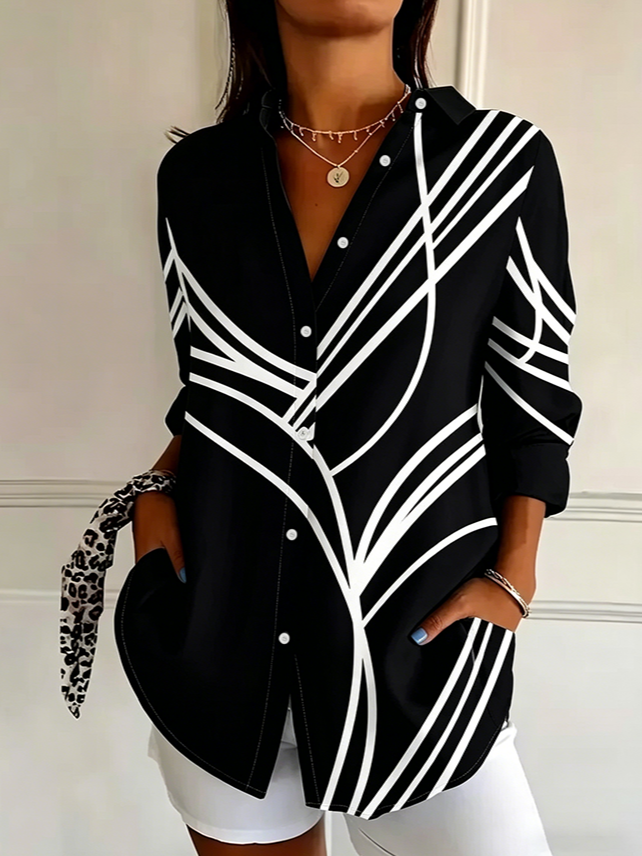 Women's Long Sleeve Shirt Spring/Fall Black Abstract Buckle Shirt Collar Regular Sleeve Daily Going Out Casual Top