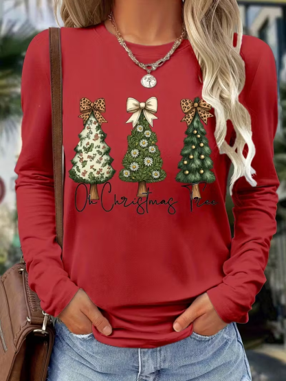 Women's Long Sleeve T-shirt Spring/Fall Red Christmas Printing Jersey Crew Neck Daily Going Out Casual Top