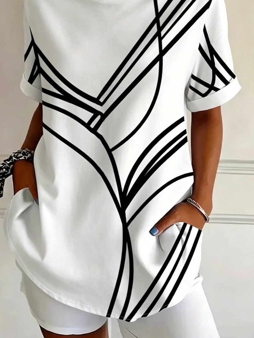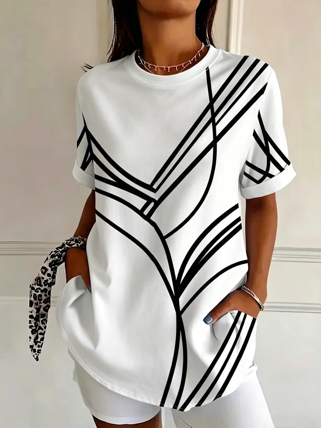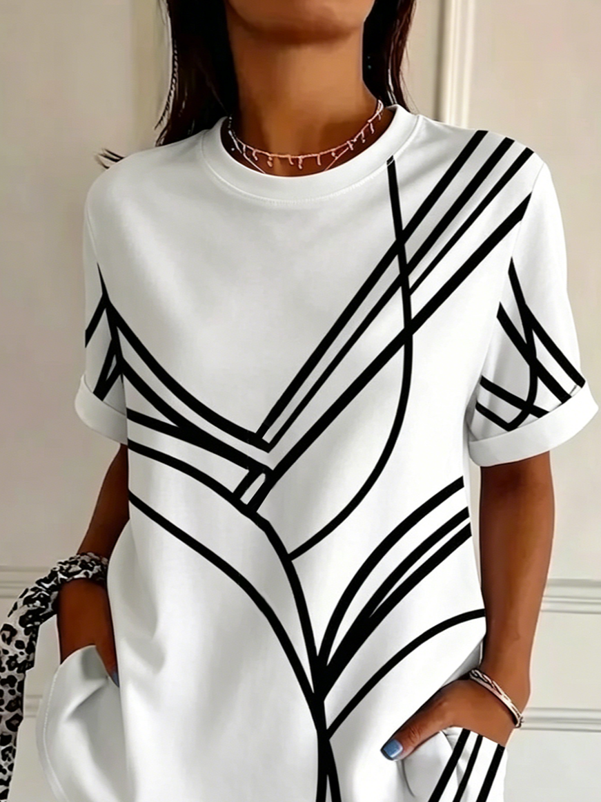 Women's Short Sleeve T-shirt Summer White Abstract Printing Jersey Crew Neck Daily Going Out Casual Top