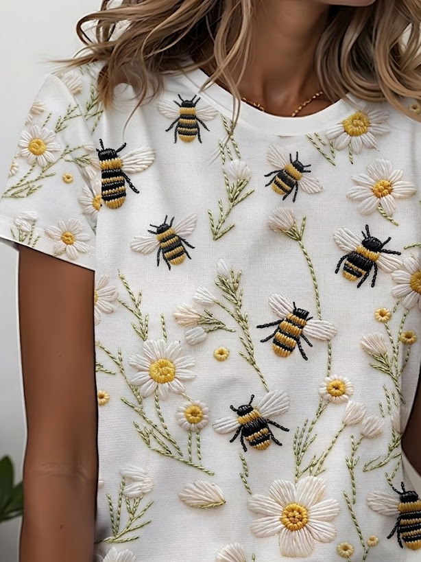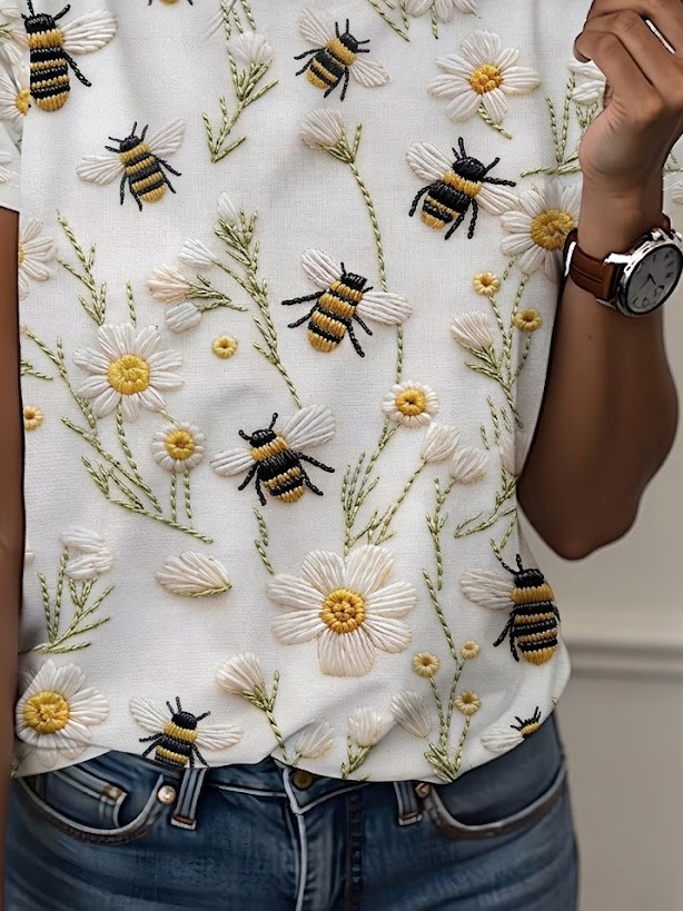 Women's Short Sleeve T-shirt Summer White Floral Printing Jersey Crew Neck Daily Going Out Casual Top