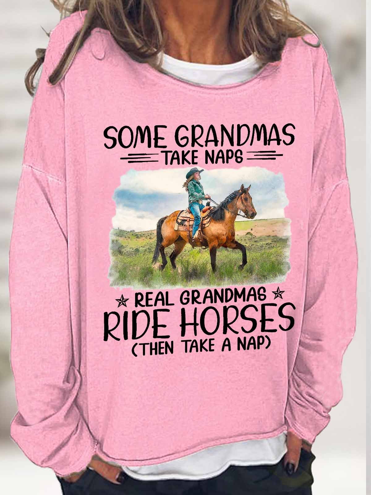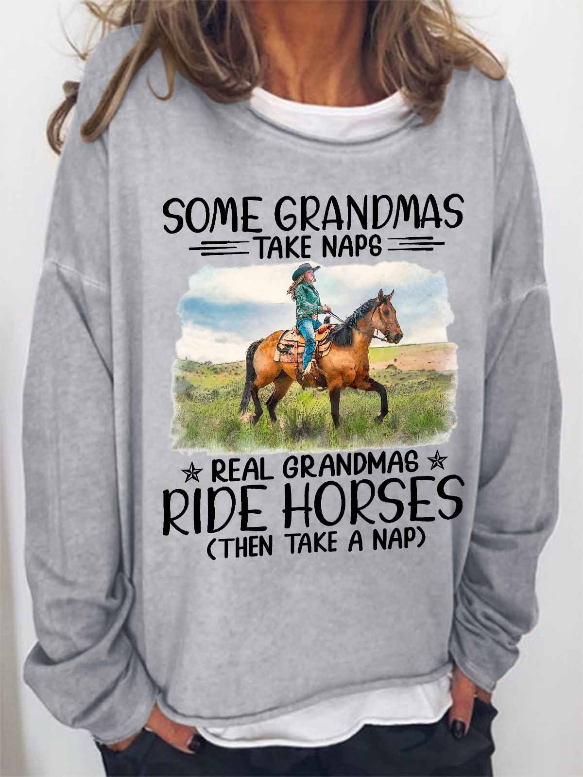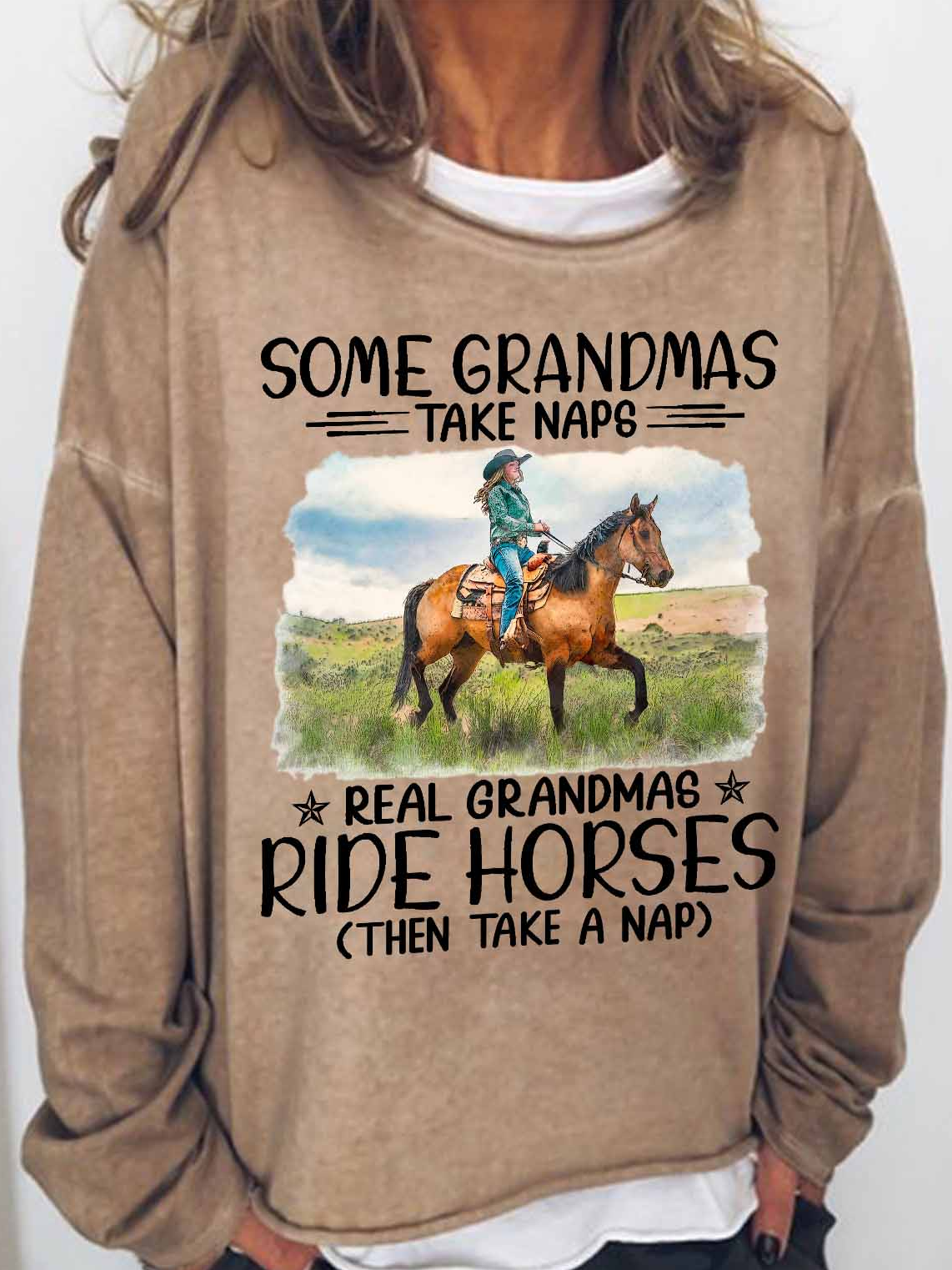 Women's Funny some grandmas take naps real grandmas ride horses then take a nap Text Letters Loose Sweatshirt