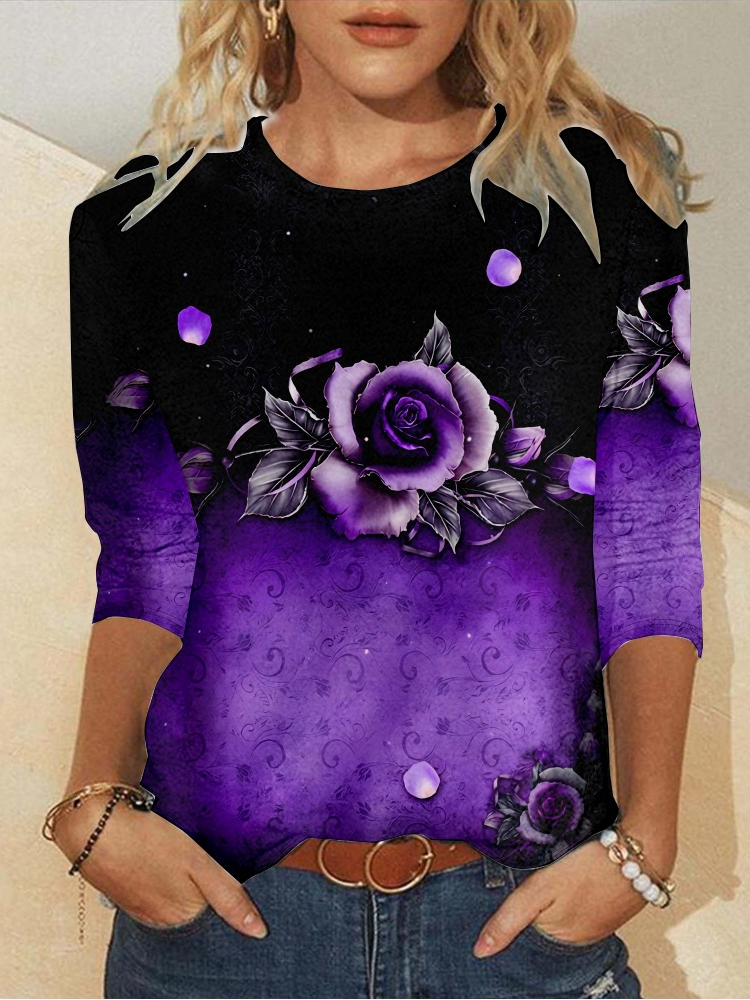 Alzheimer's Casual Crew Neck Floral Long Sleeve Shirt