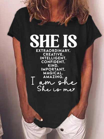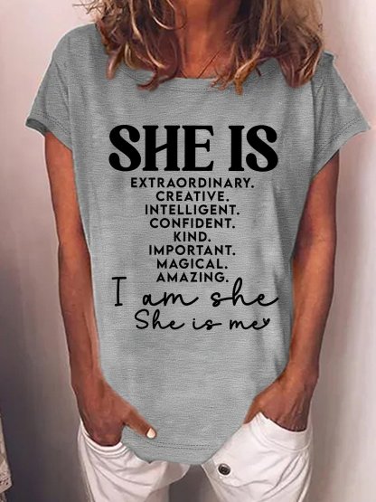 Women's She Is Extraordinary Creative intelligent Confident Kind Important Magical Amazing I Am She She Is Me Funny Graphic Printing Casual Crew Neck Text Letters Cotton-Blend T-Shirt