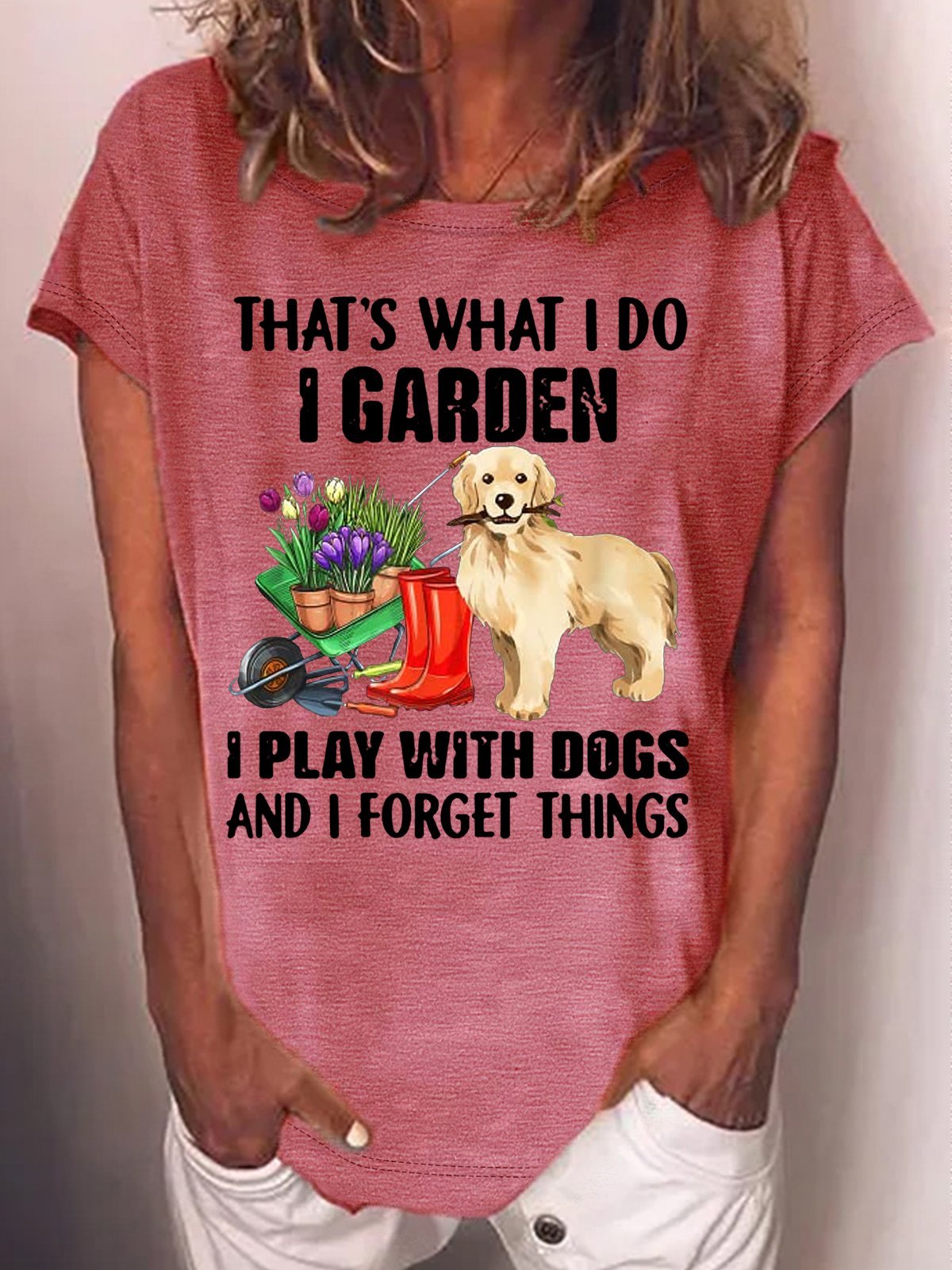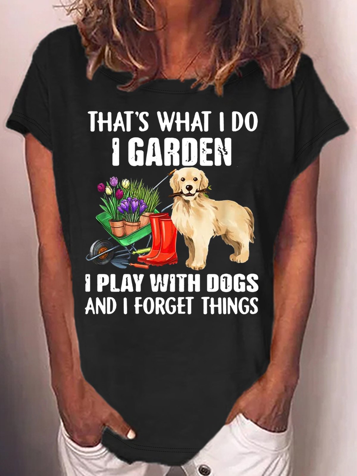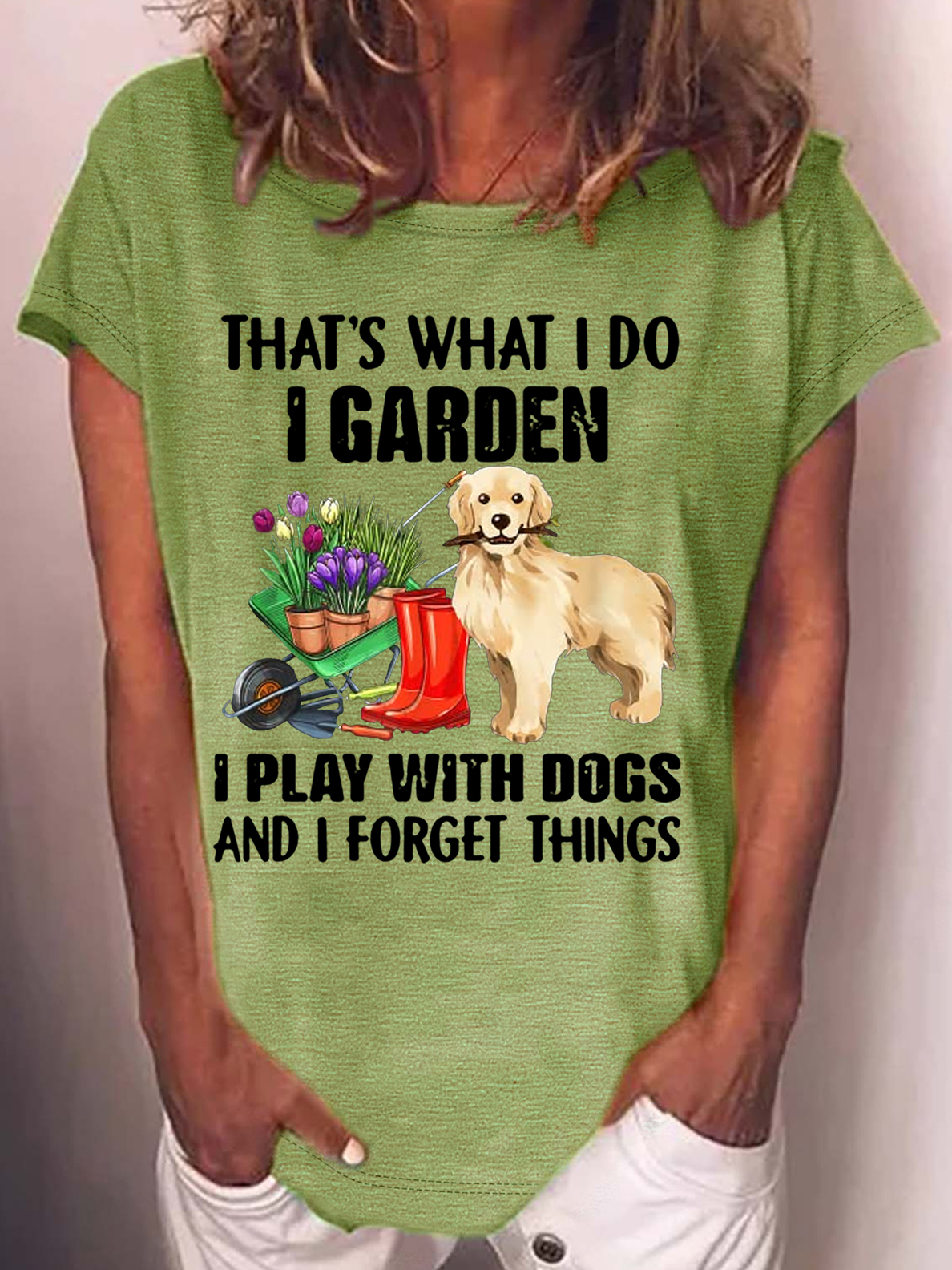 Women's Funny That’s what i do Garden Dogs lover Casual Letters Crew Neck T-Shirt