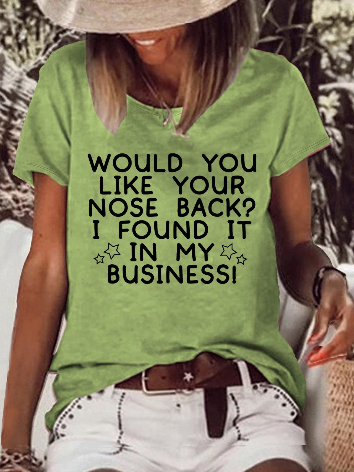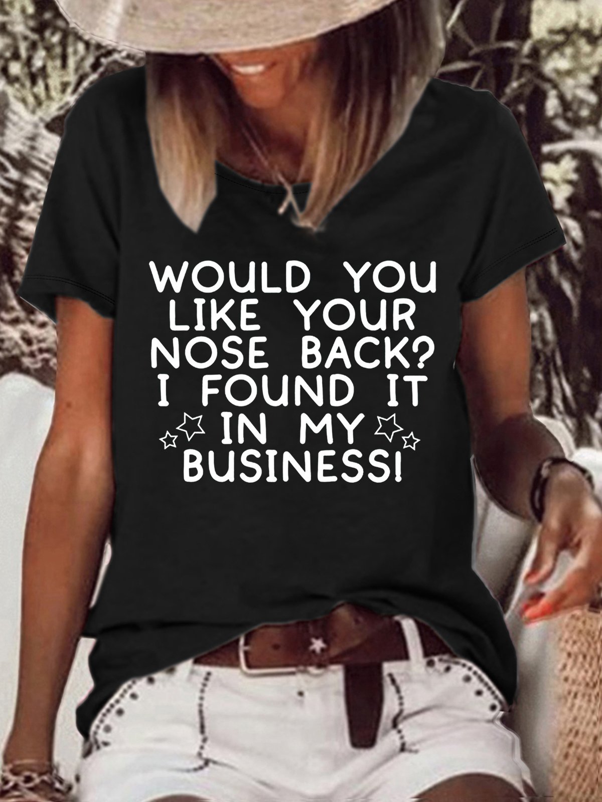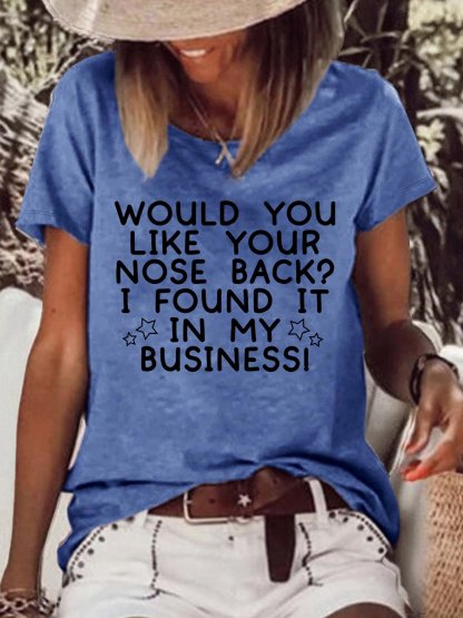 Women's Would You Like Your Nose Back Letters Crew Neck Casual T-Shirt