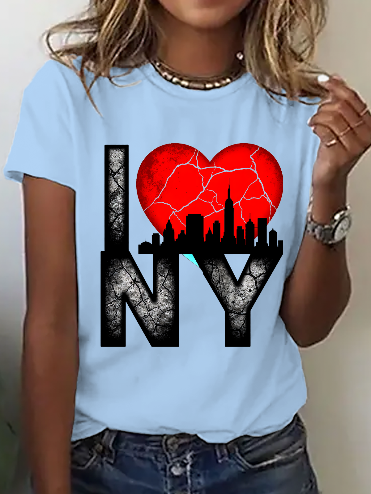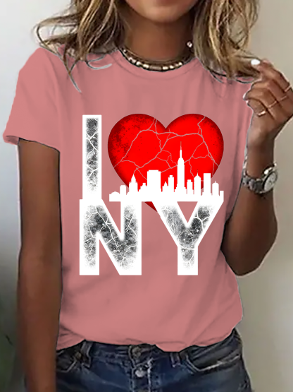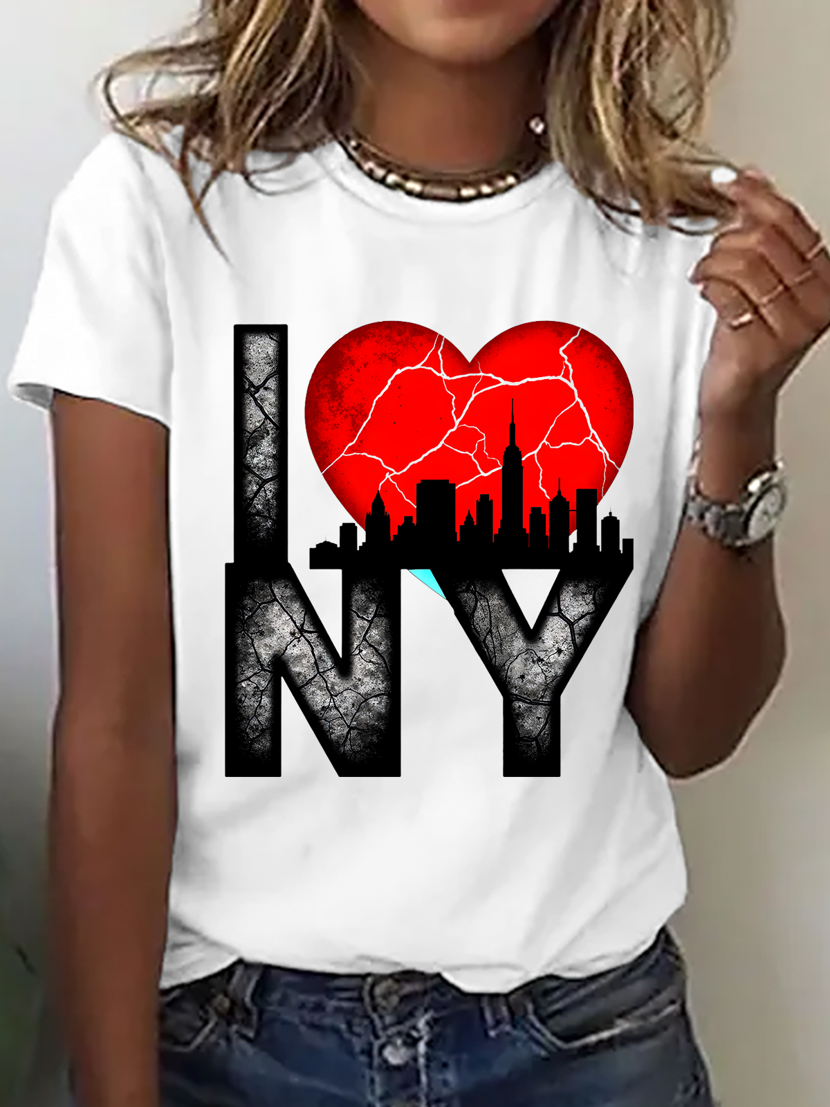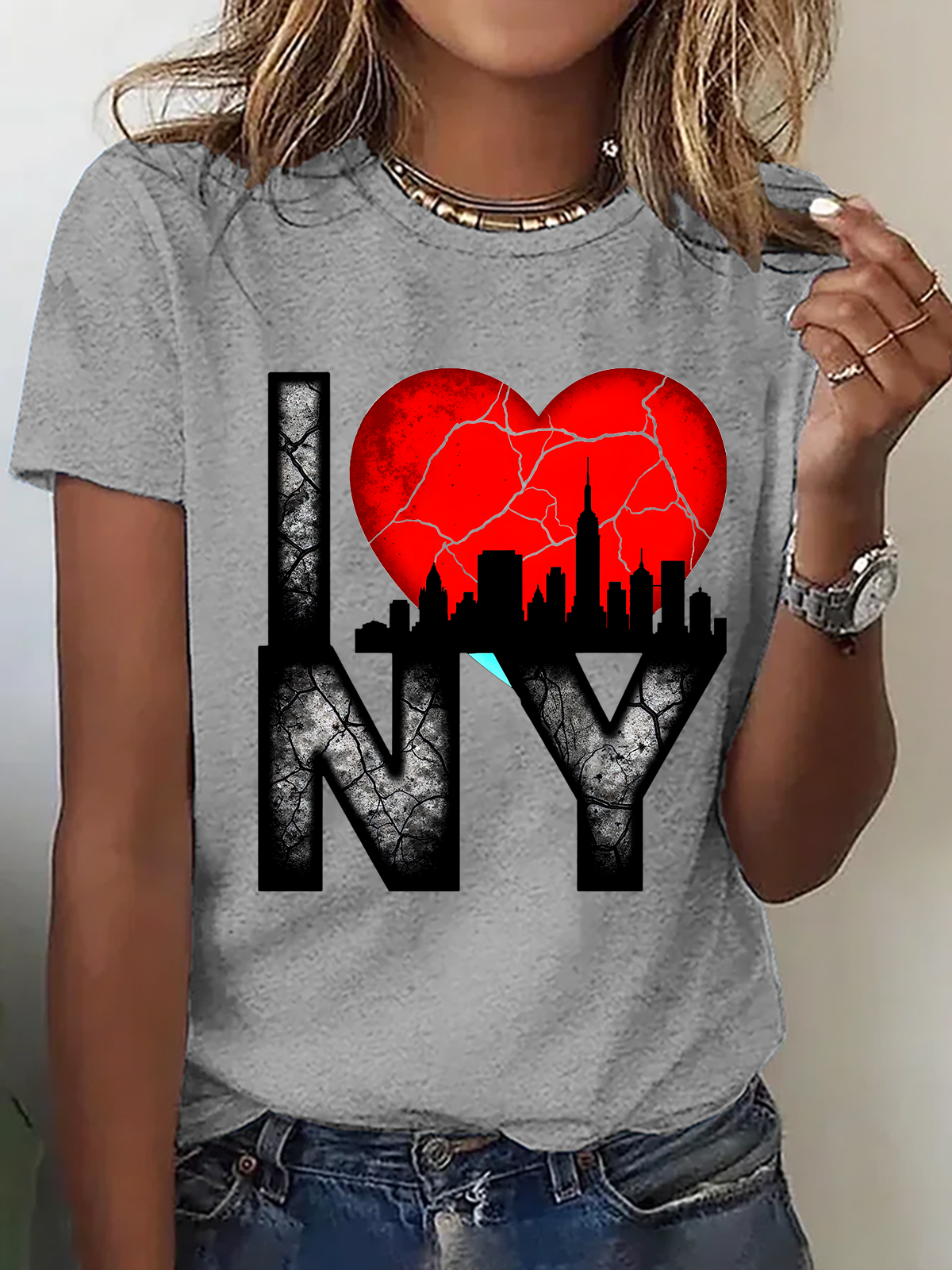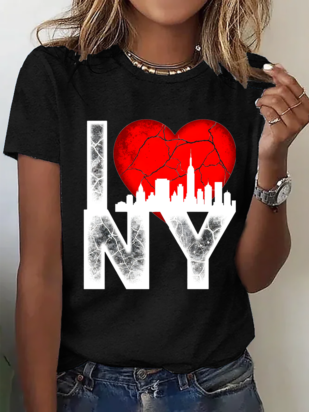 I Love NY Cracked Skyline Cotton T-Shirtw