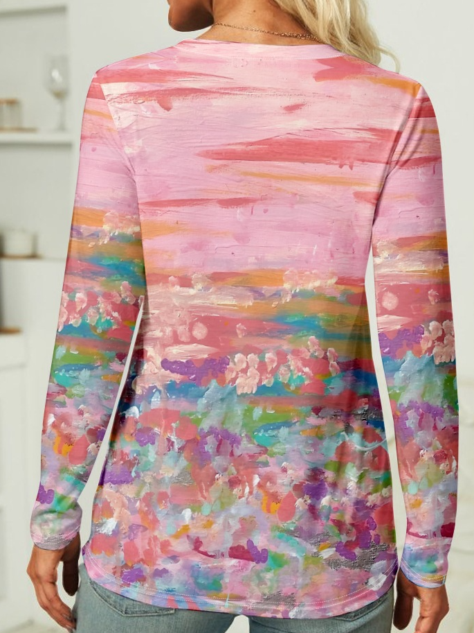 Women's Breast Cancer Awareness Print Color Block Casual Long Sleeve Shirt