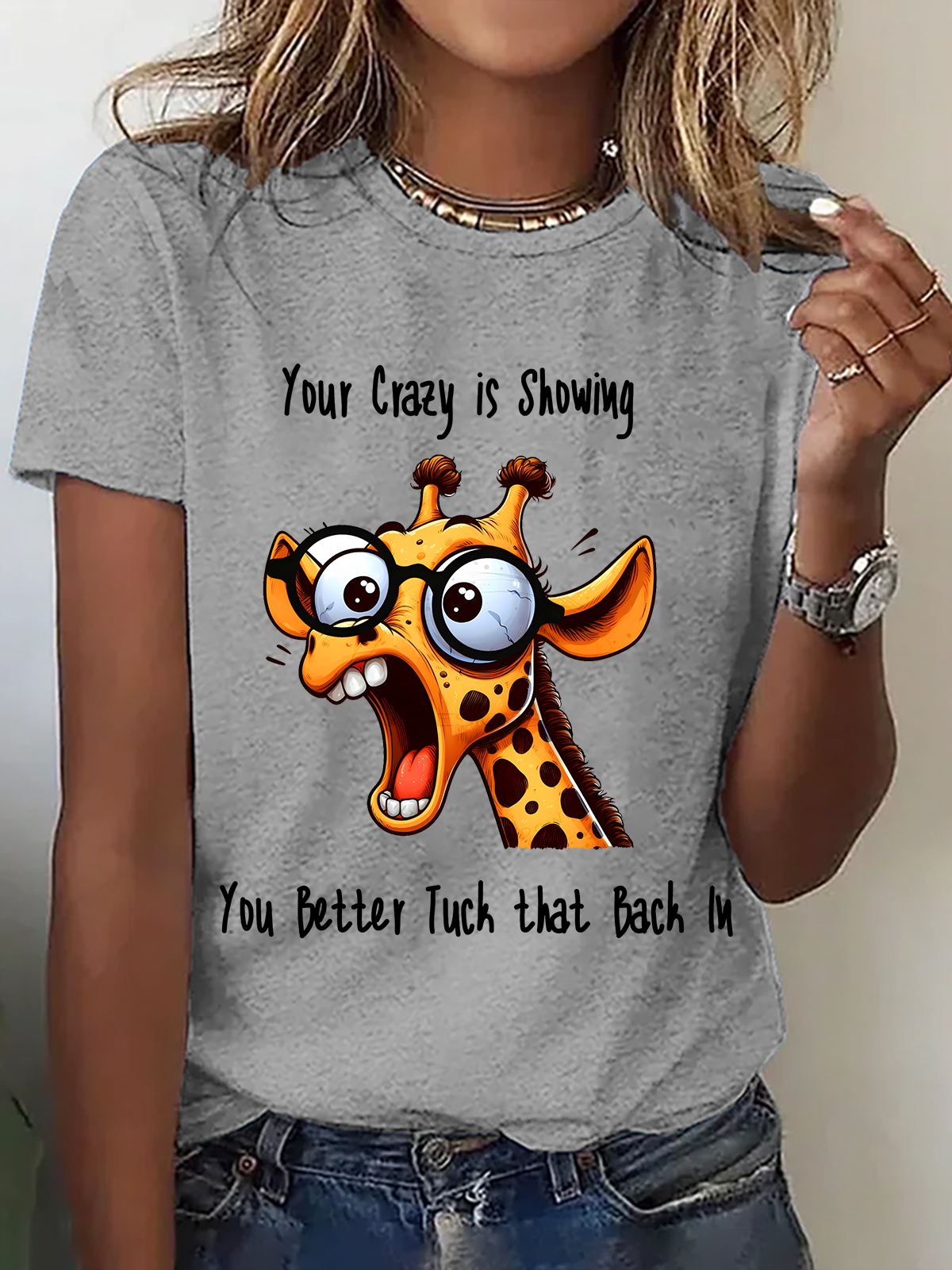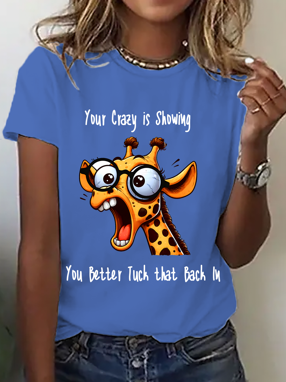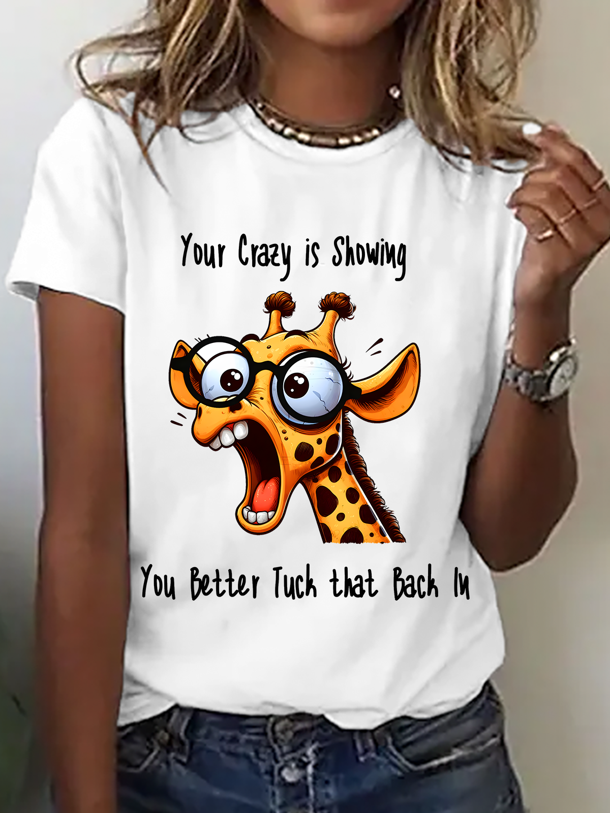 Your Crazy Is Showing, You Better Tuck That Back In Funny Giraffe Cotton T-Shirt