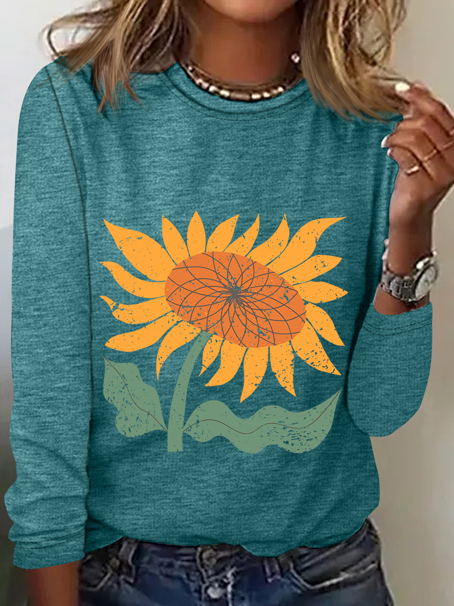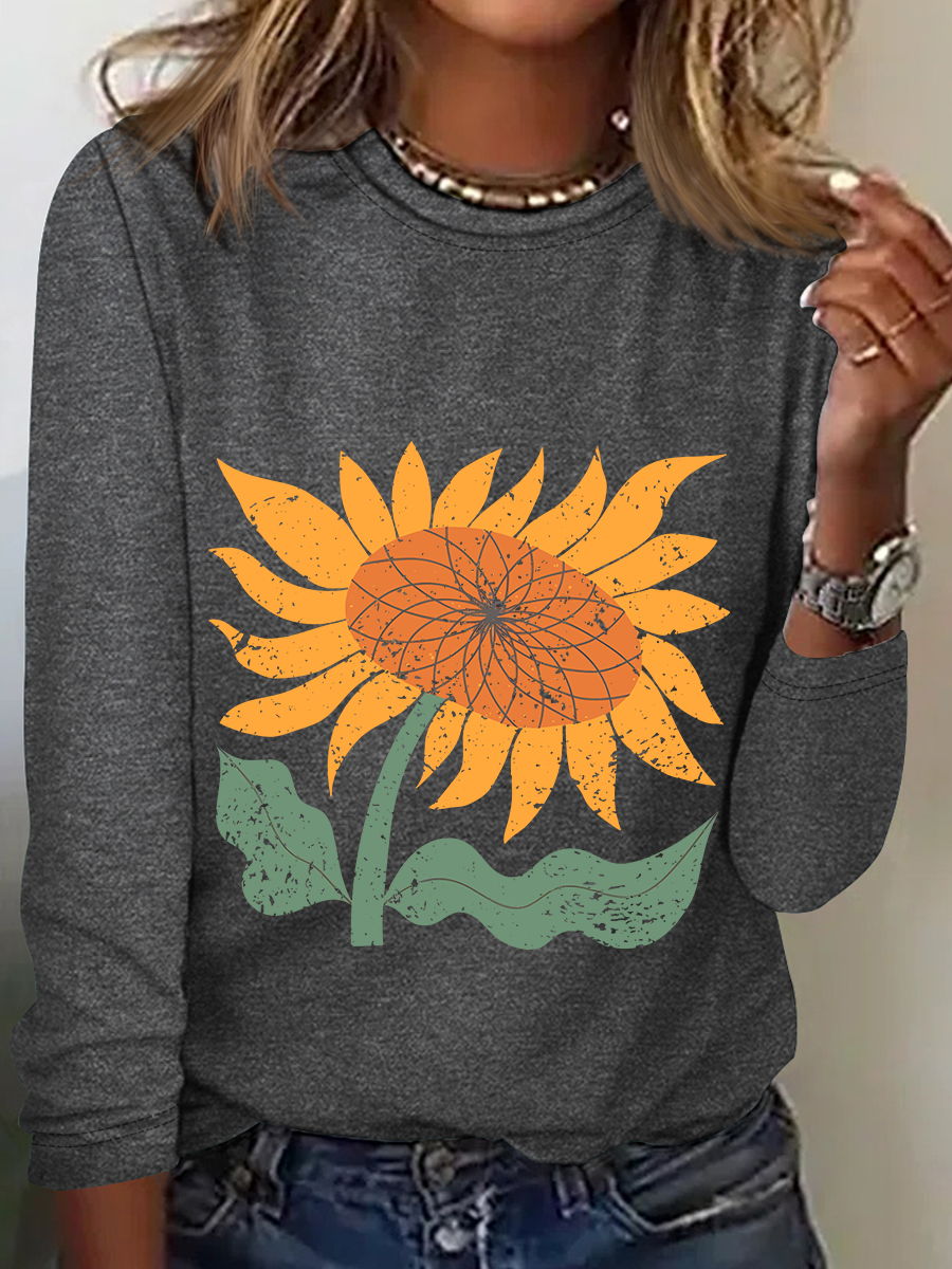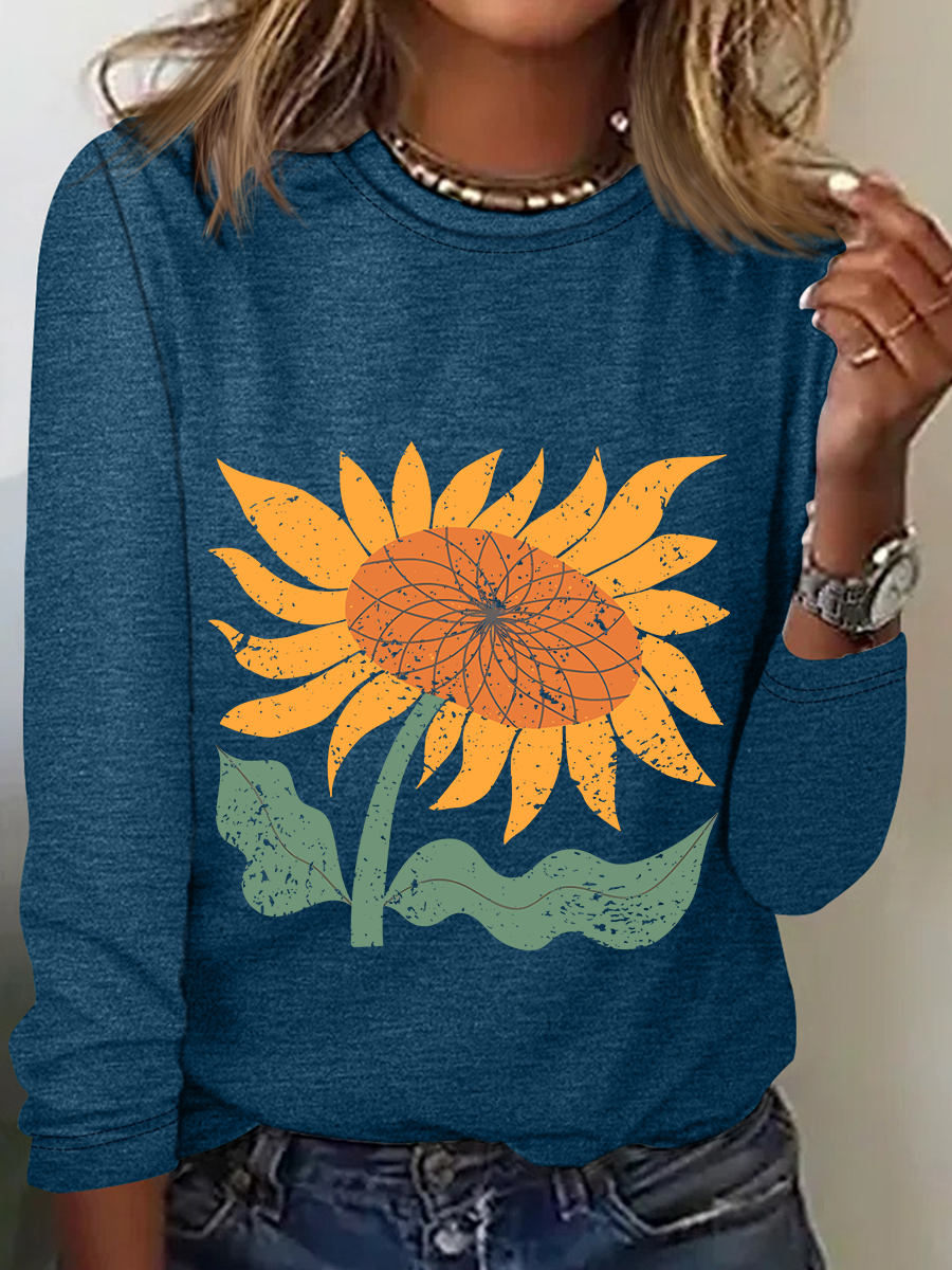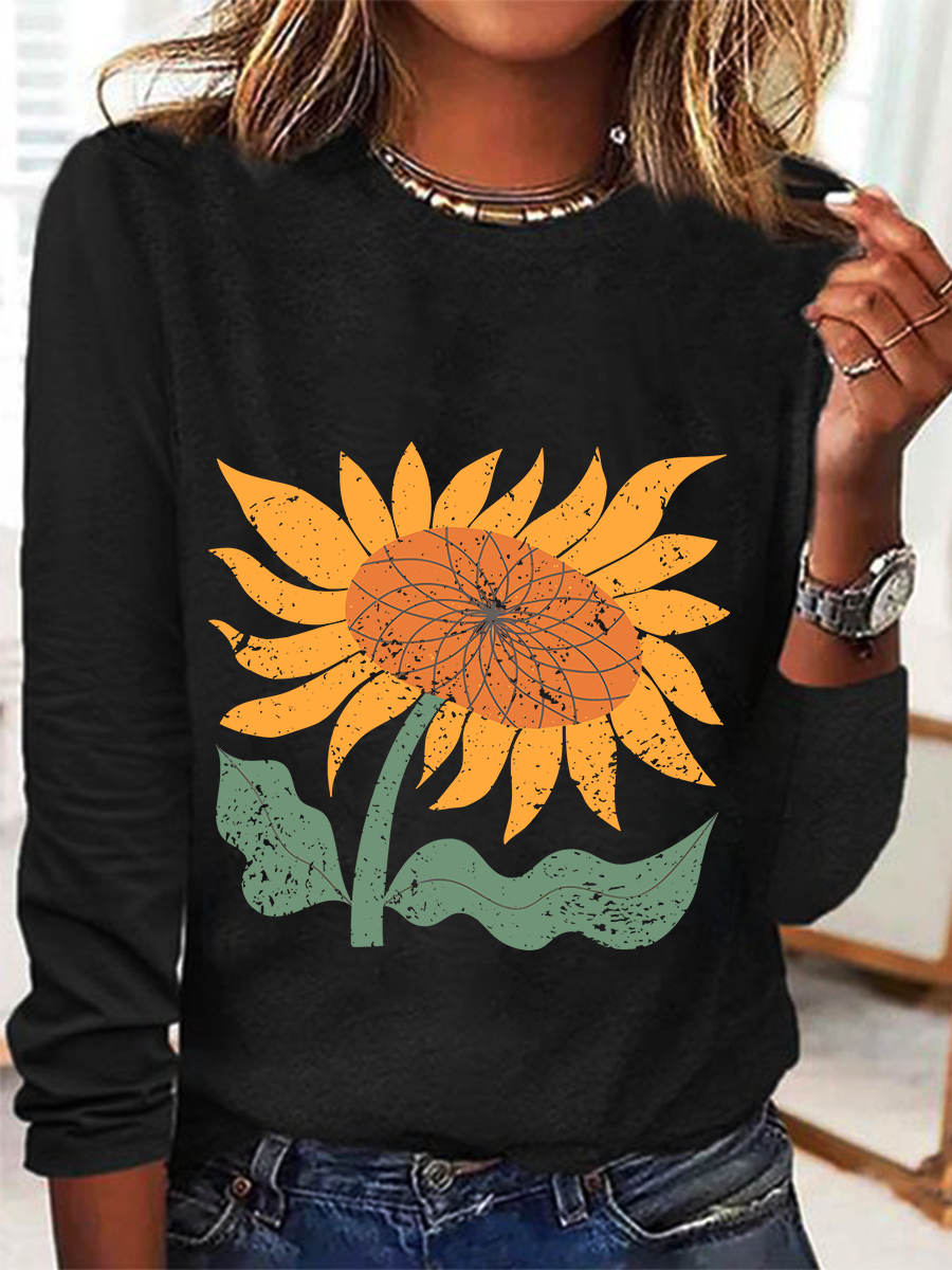 Boho Sunflower Casual Long Sleeve Shirt