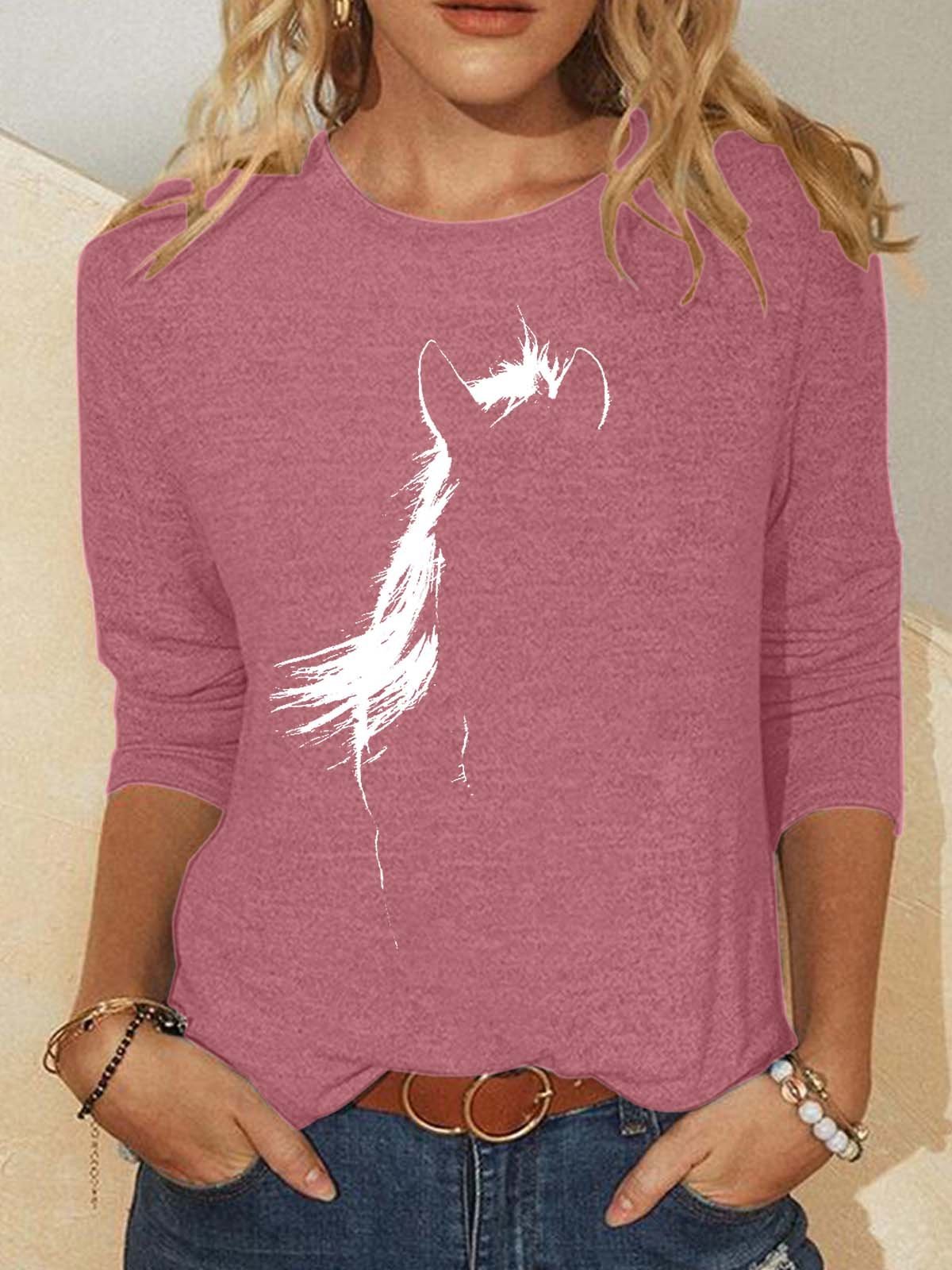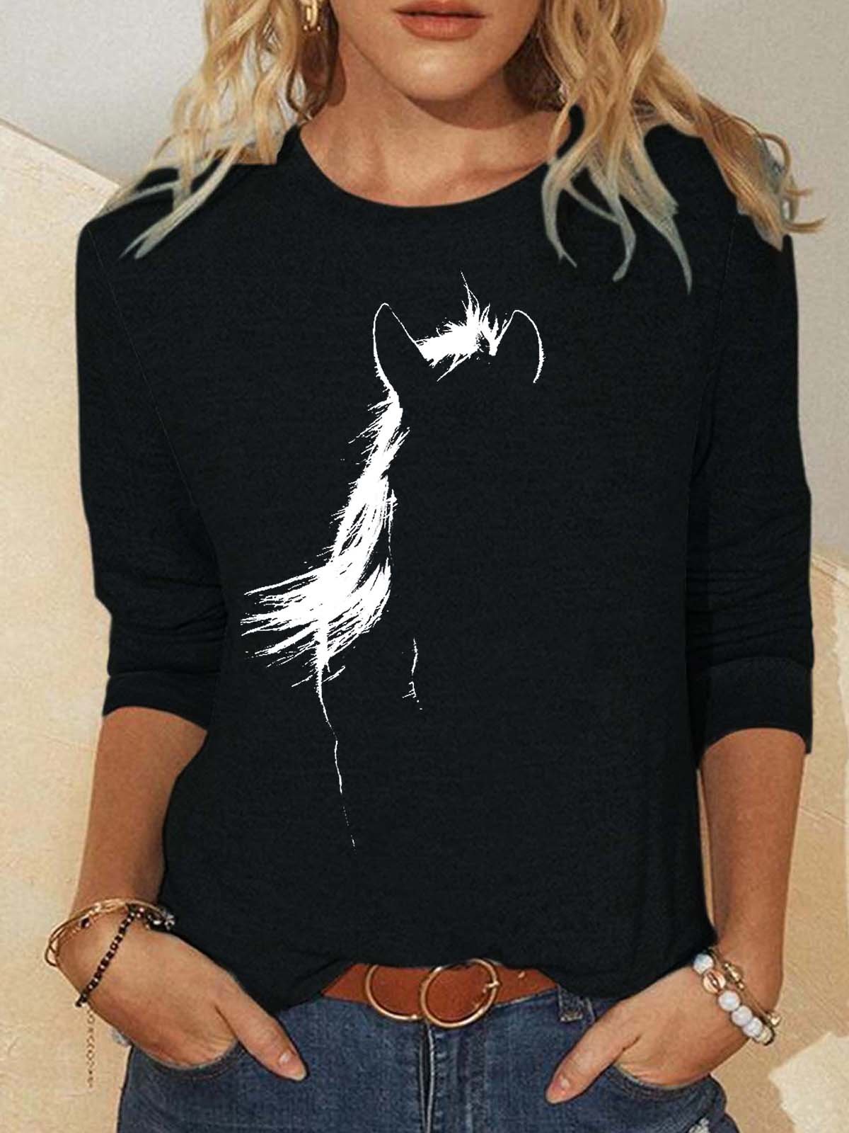 Women’s Animal Horse Pattern Casual Polyester Cotton Top