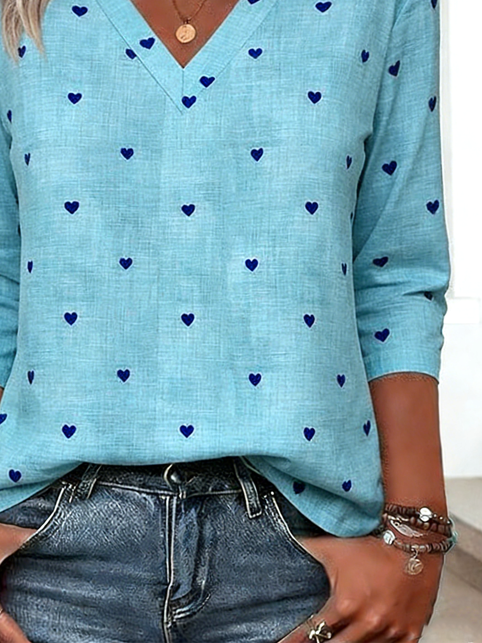Casual Loose V Neck Cotton-Blend T-Shirt