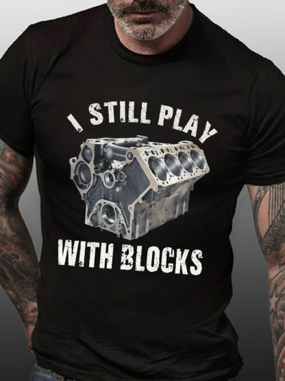 Cotton I Still Play With Blocks Casual Crew Neck Loose T-Shirt