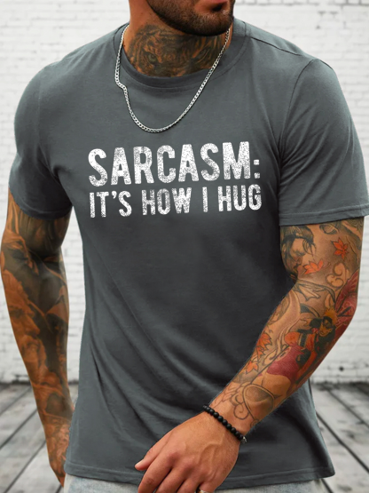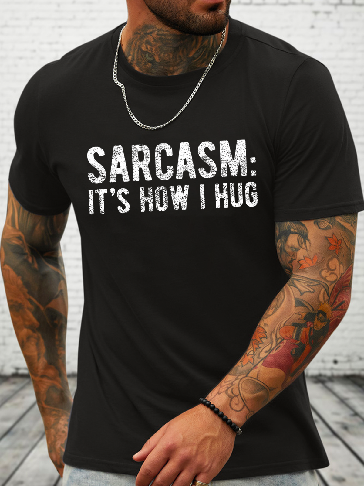 Cotton Sarcasm:It's How I Hug, Nice Guy Crew Neck Cotton Casual Text Letters T-Shirt