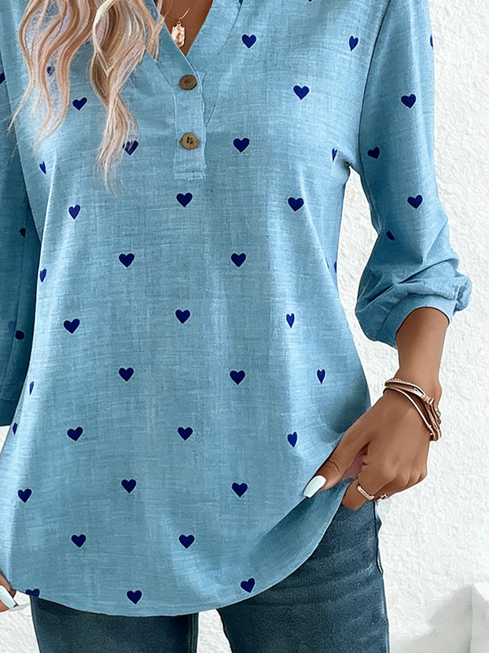 Geometric Elegant Cotton V Neck T-Shirt