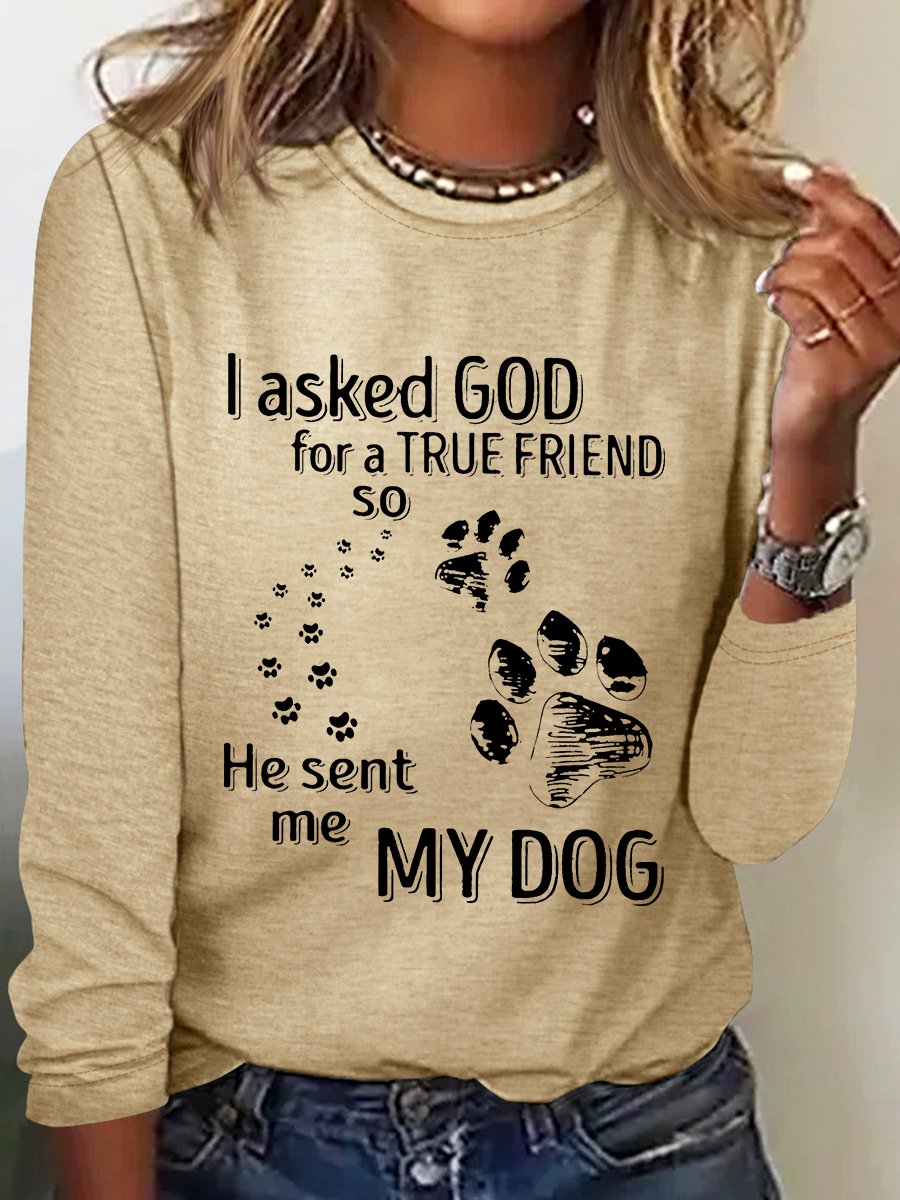I Asked God For A True Friend So He Sent Me My Dog Long Sleeve Shirt