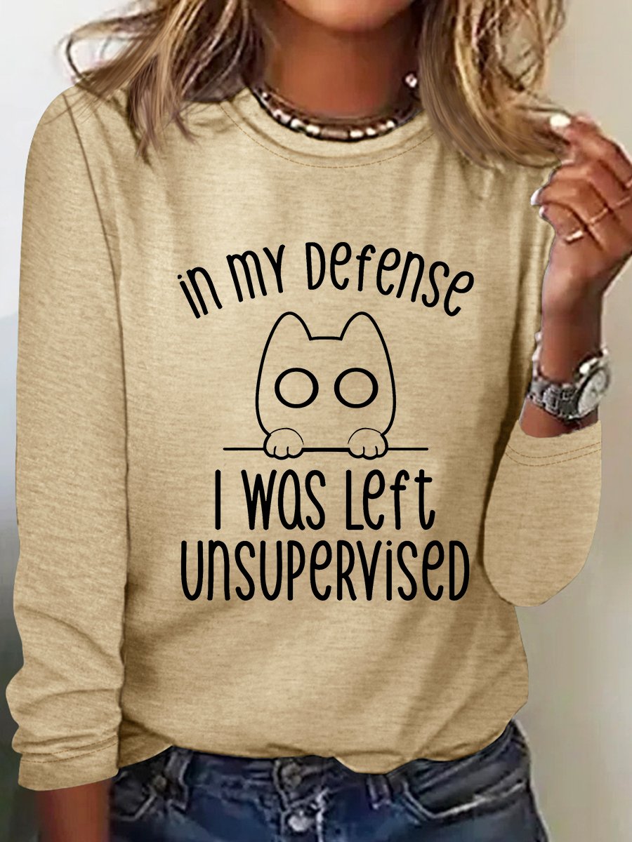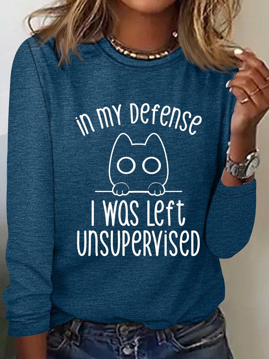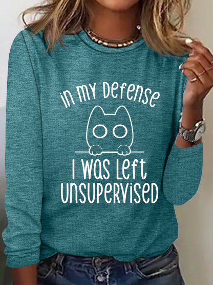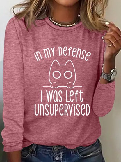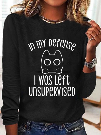 In my Defense I Was Left Funny Cat Casual Long Sleeve Shirt