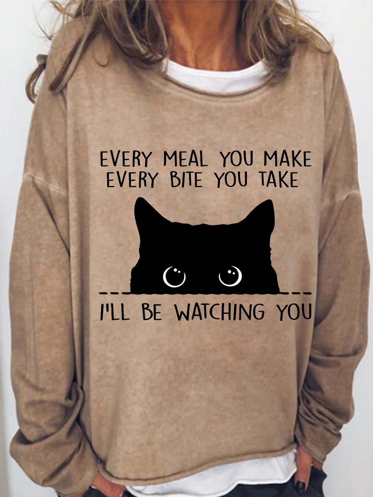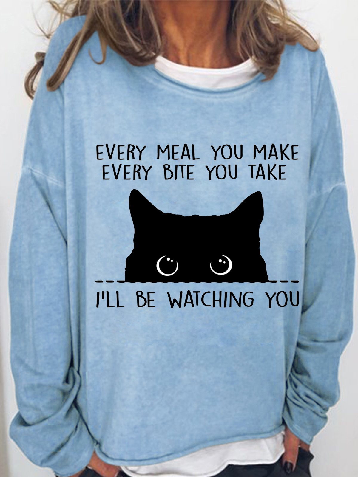 Women’s Black Cat Every Meal You Make Every Bite You Take I'll Be Watching You Text Letters Simple Sweatshirt