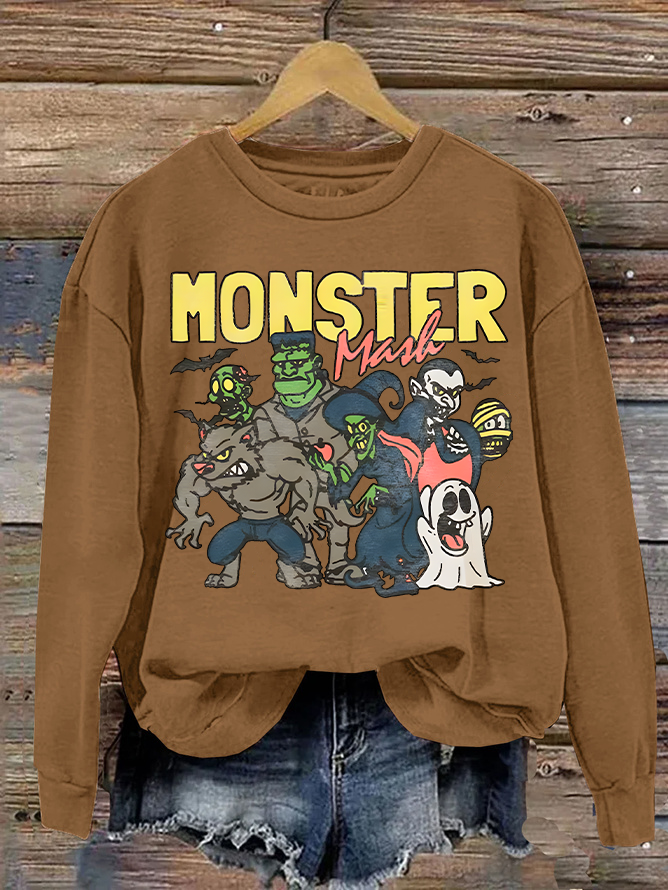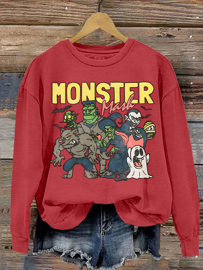 Women's Monster Mashup - Retro Ghost Halloween Sweatshirt