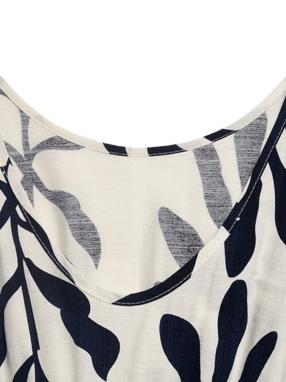 Women's Sleeveless Summer Purplish Blue Leaf Split Joint Crew Neck Daily Going Out Casual Maxi A-Line Tank Dress