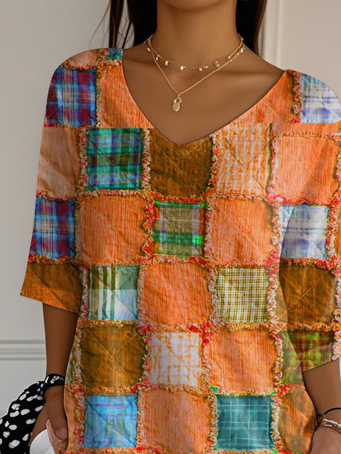 Women's Three Quarter Sleeve T-shirt Spring/Fall Orange Halloween Printing V Neck Daily Going Out Casual Top