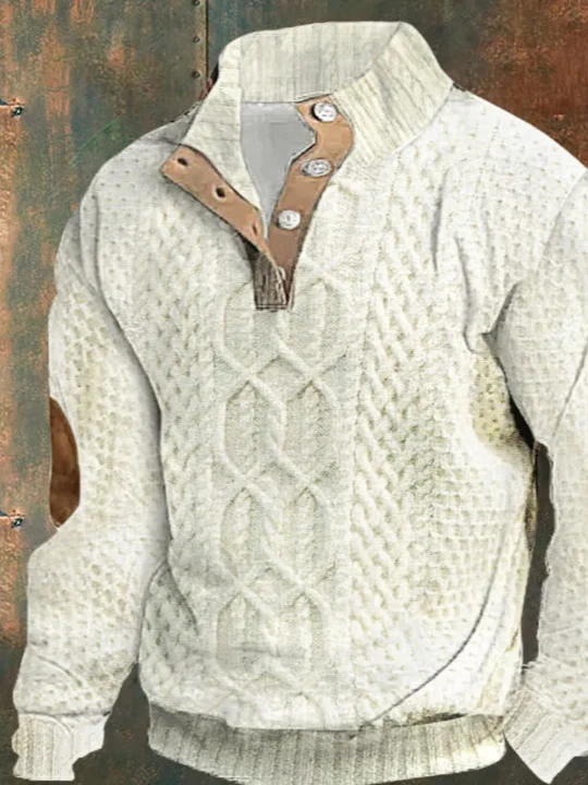 Men's Twists Braid Printed Standing Collar Button Casual Sweatshirt