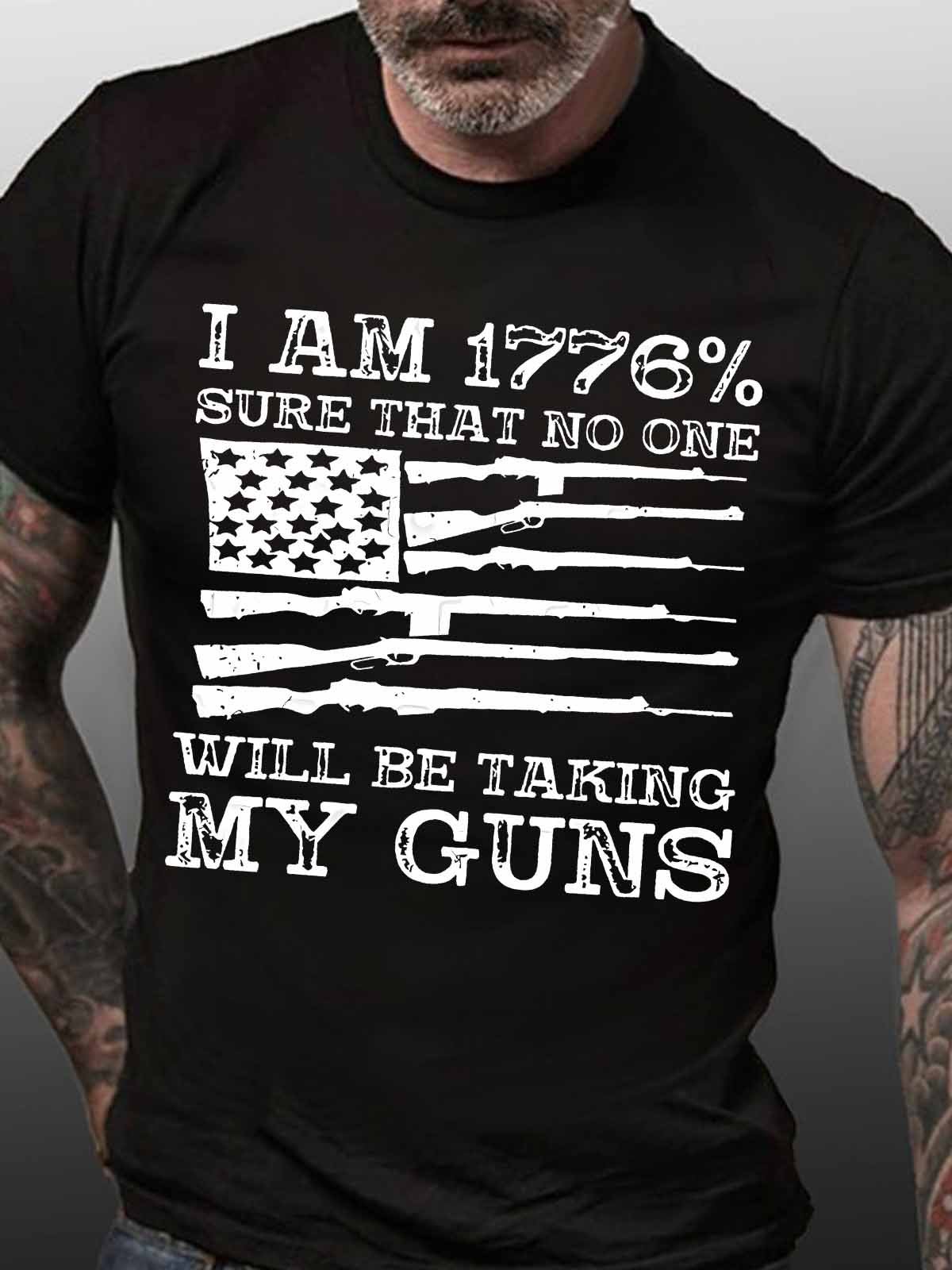 Men's I Am 1776% Sure That No One Will Be Taking My Guns Funny Graphic Print Flag Cotton Casual T-Shirt