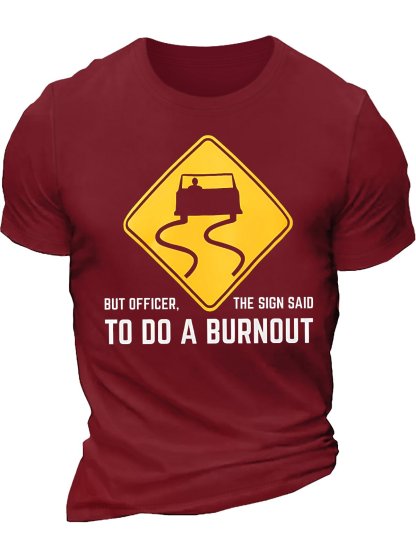 Men's But Officer The Sign Said To Do A Burnout Funny Graphic Printing Text Letters Cotton Casual T-Shirt
