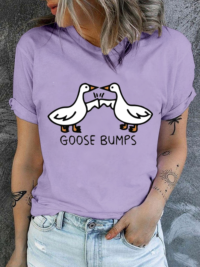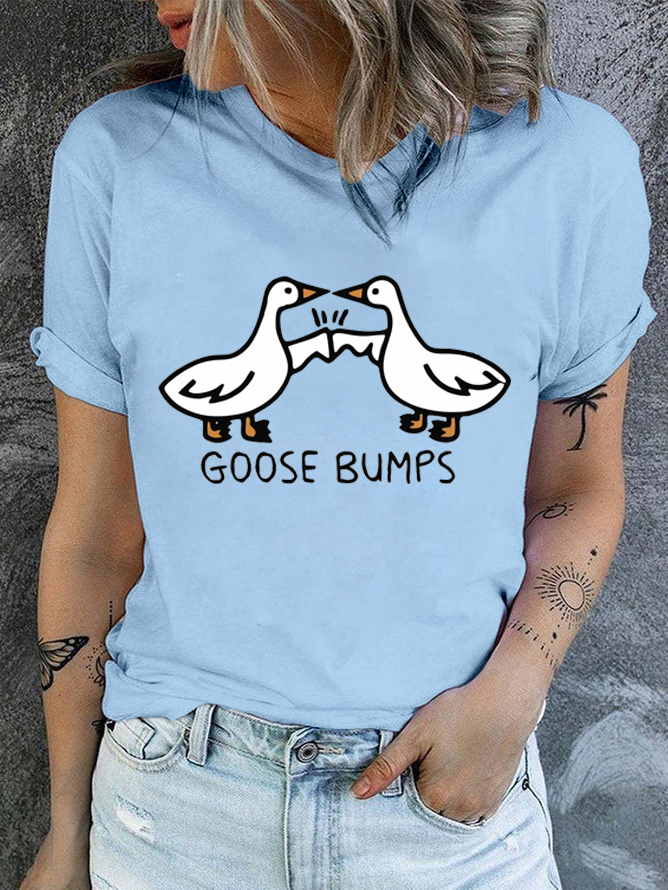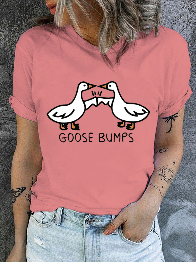 Cotton Goosebumps Casual Crew Neck Text Letters T-Shirt