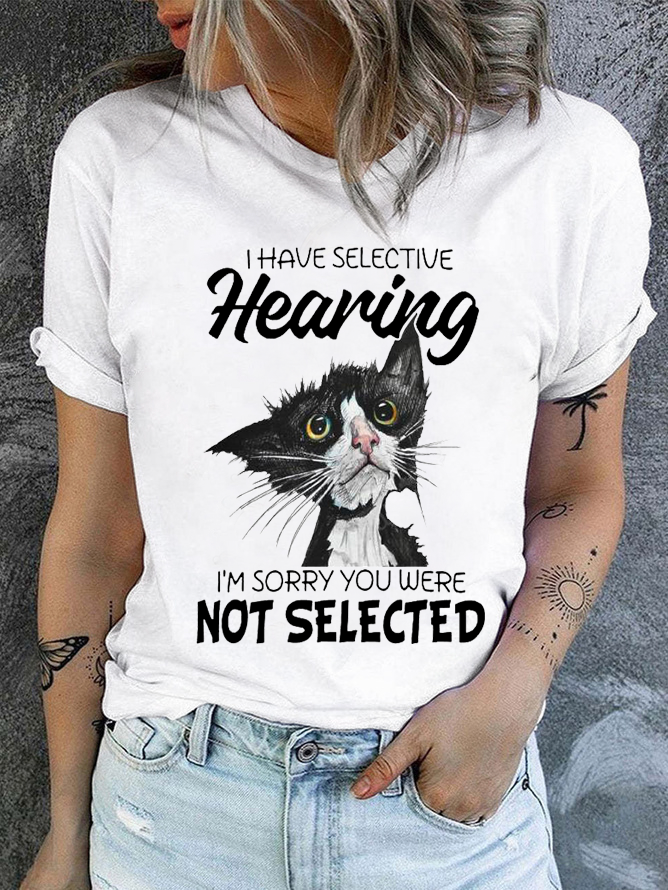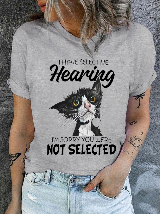 Cotton I Have Selective Hearing Im Sorry You Were Not Selected Cat Crew Neck Casual T-Shirt