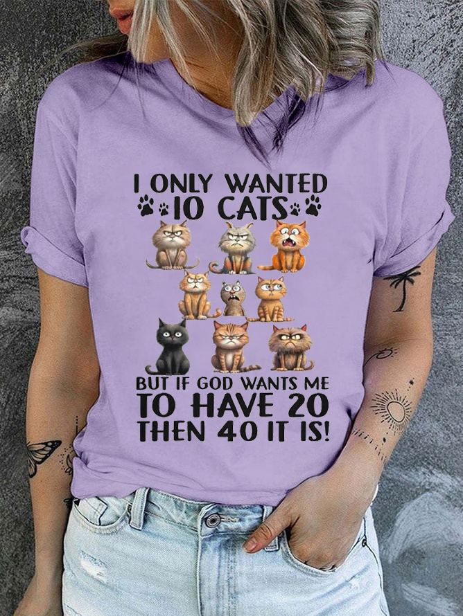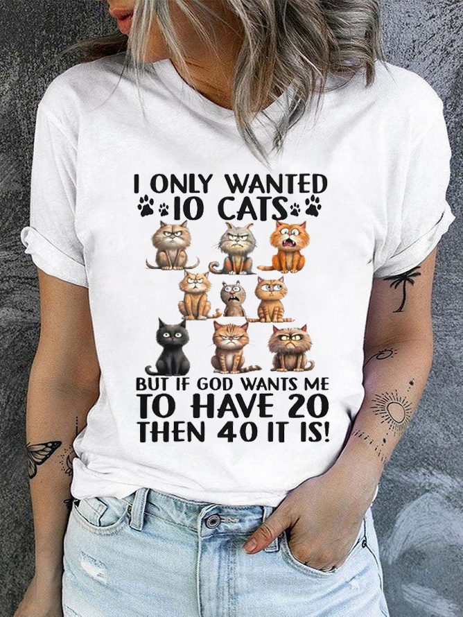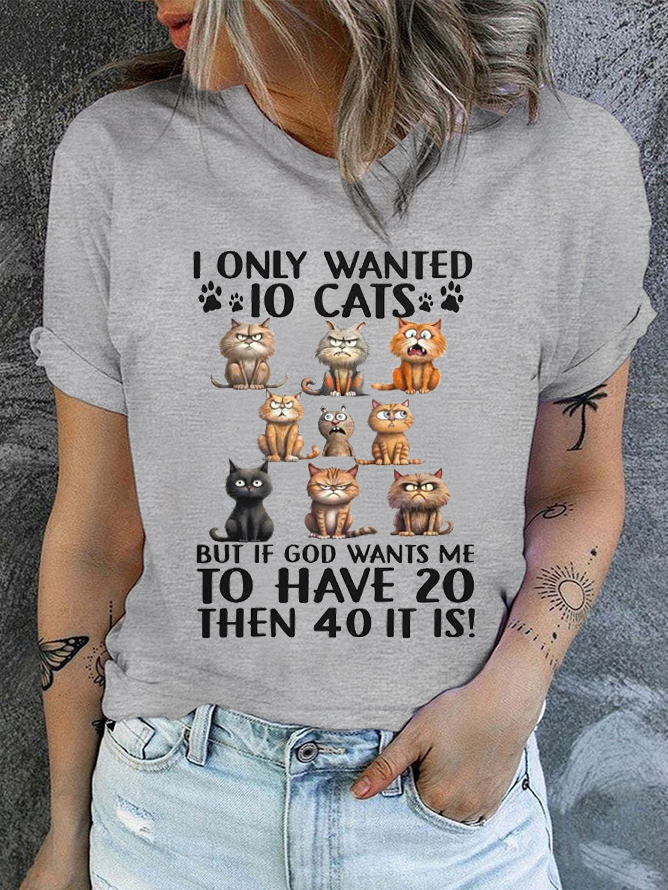 Cotton I Only Wanted 10 Cats But If God Wants Me To Have 20, Then 40 It Is Casual Regular Fit T-Shirt