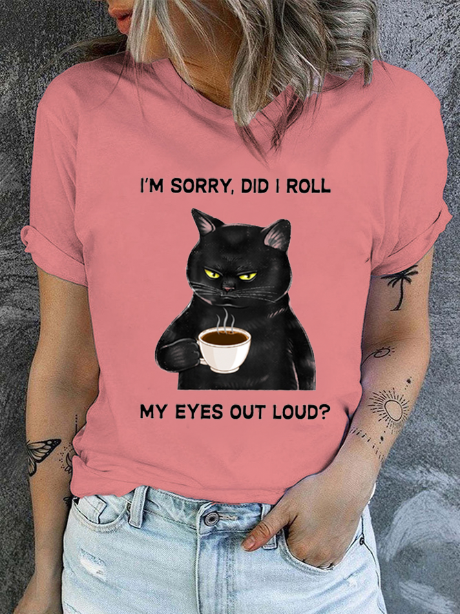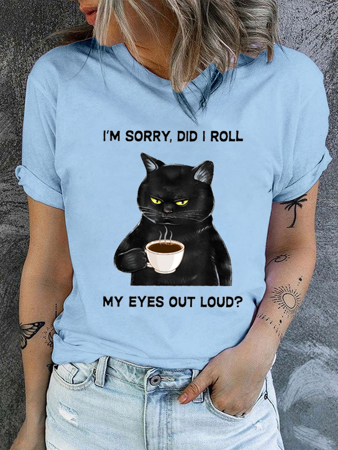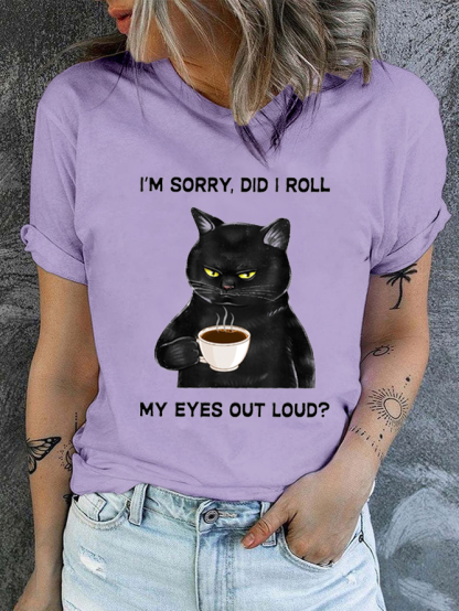 Cotton Women's I Am Sorry Did I Roll My Eyes Out Loud Funny Back Cat Graphic Printing Casual T-Shirt