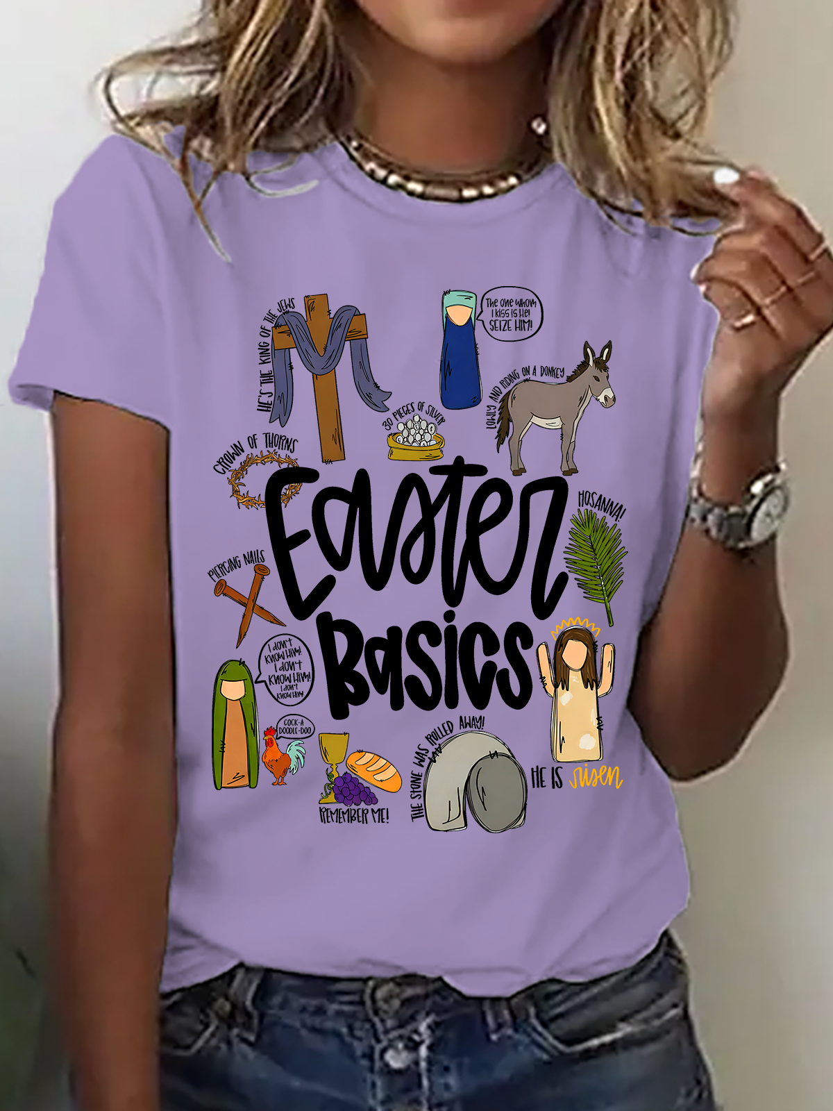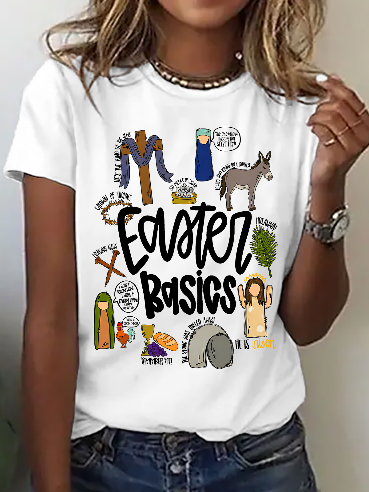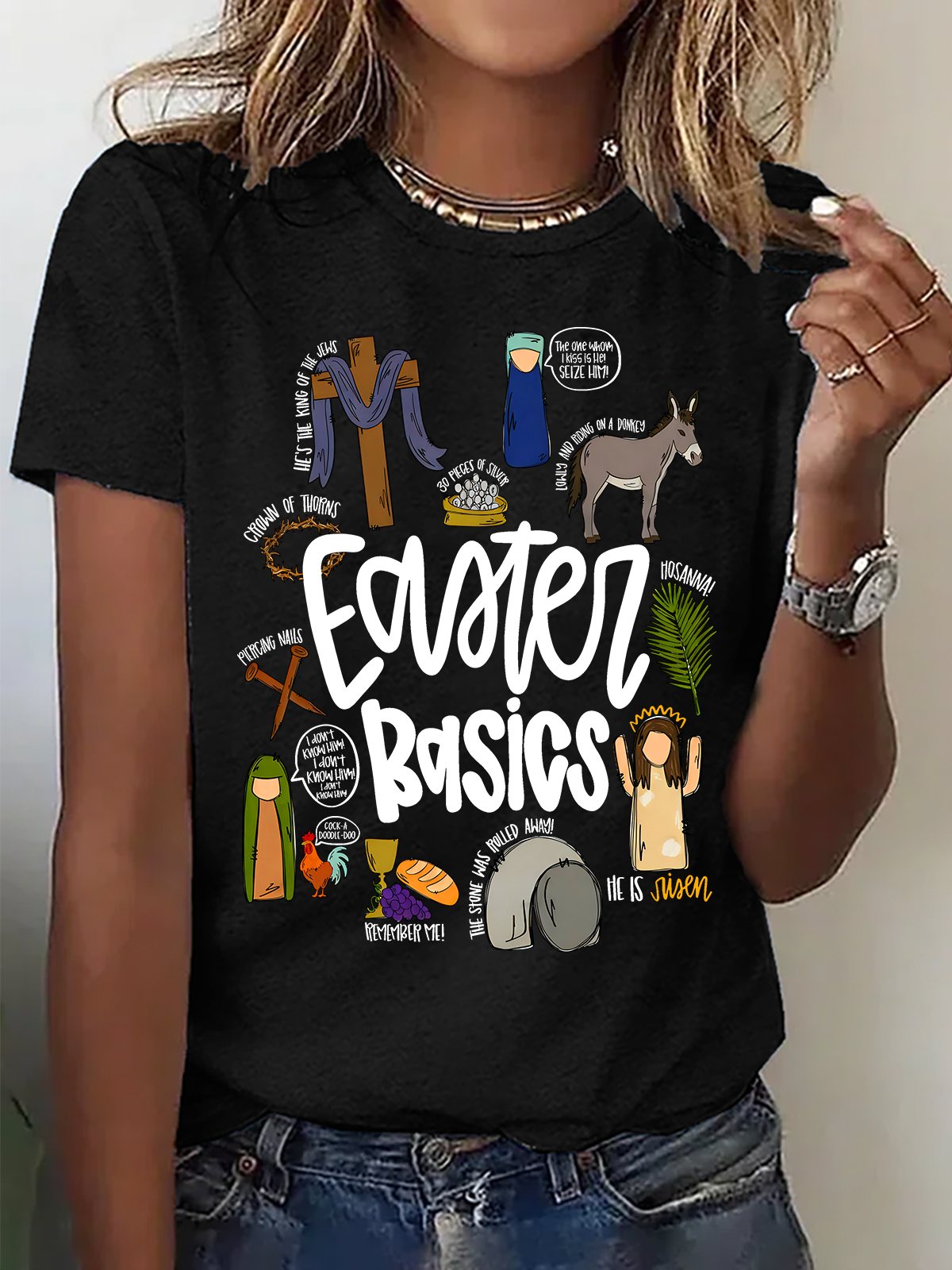 Easter Basics Easter Story On The Third Day He Rose Cotton T-Shirt