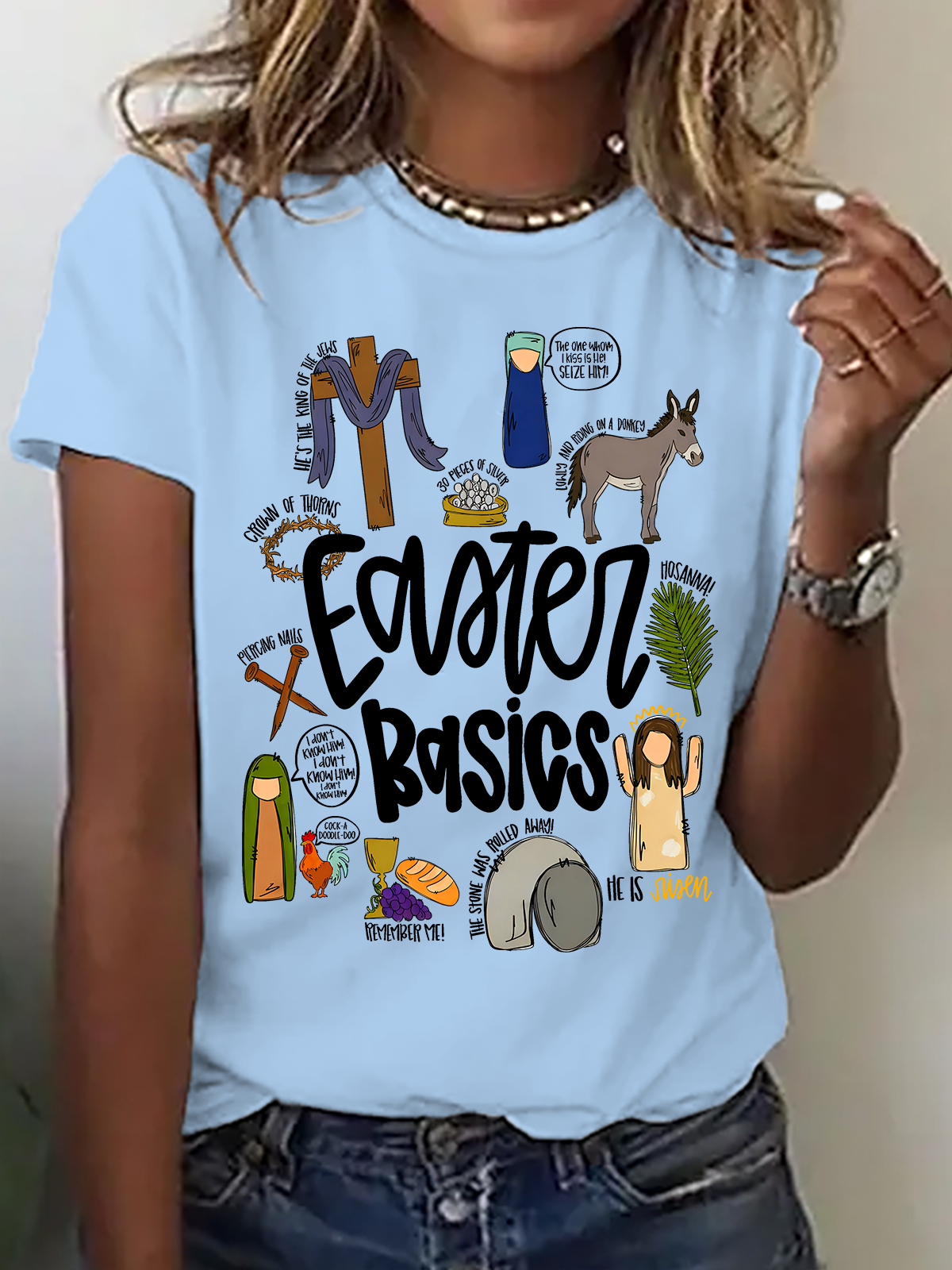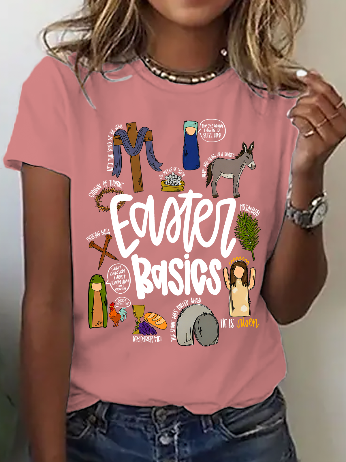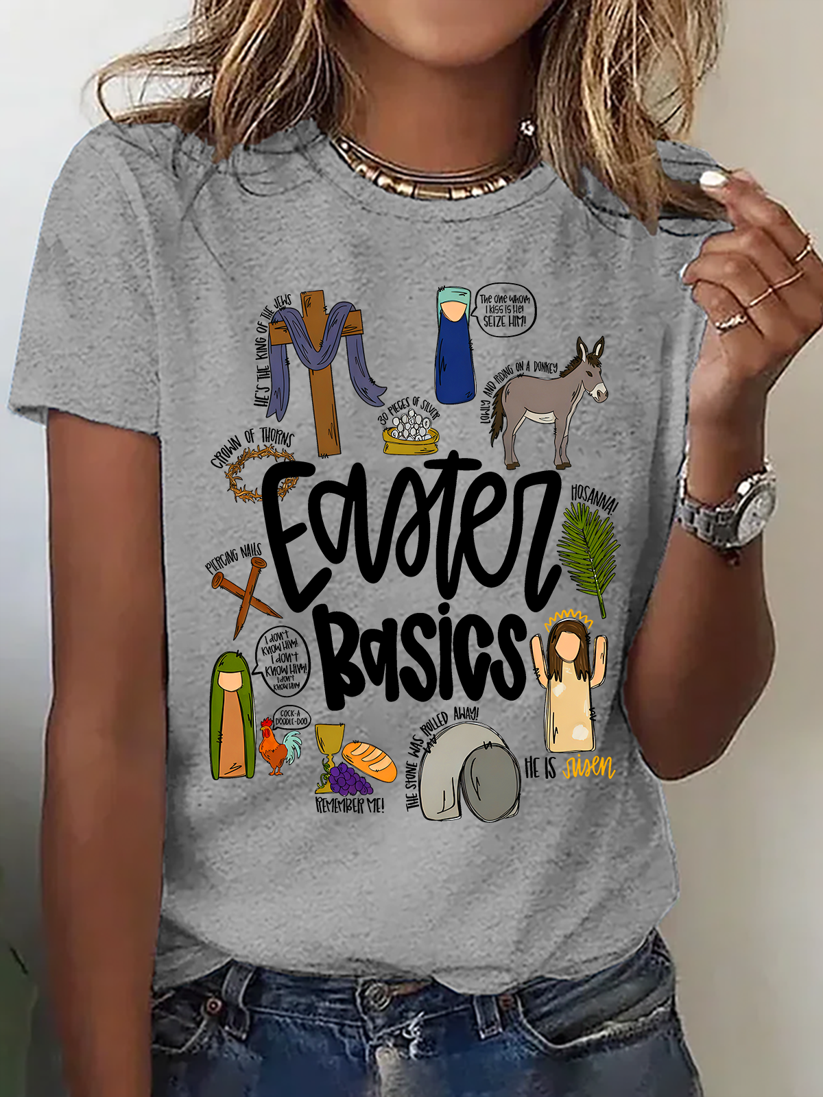 Easter Basics Easter Story On The Third Day He Rose Cotton T-Shirt