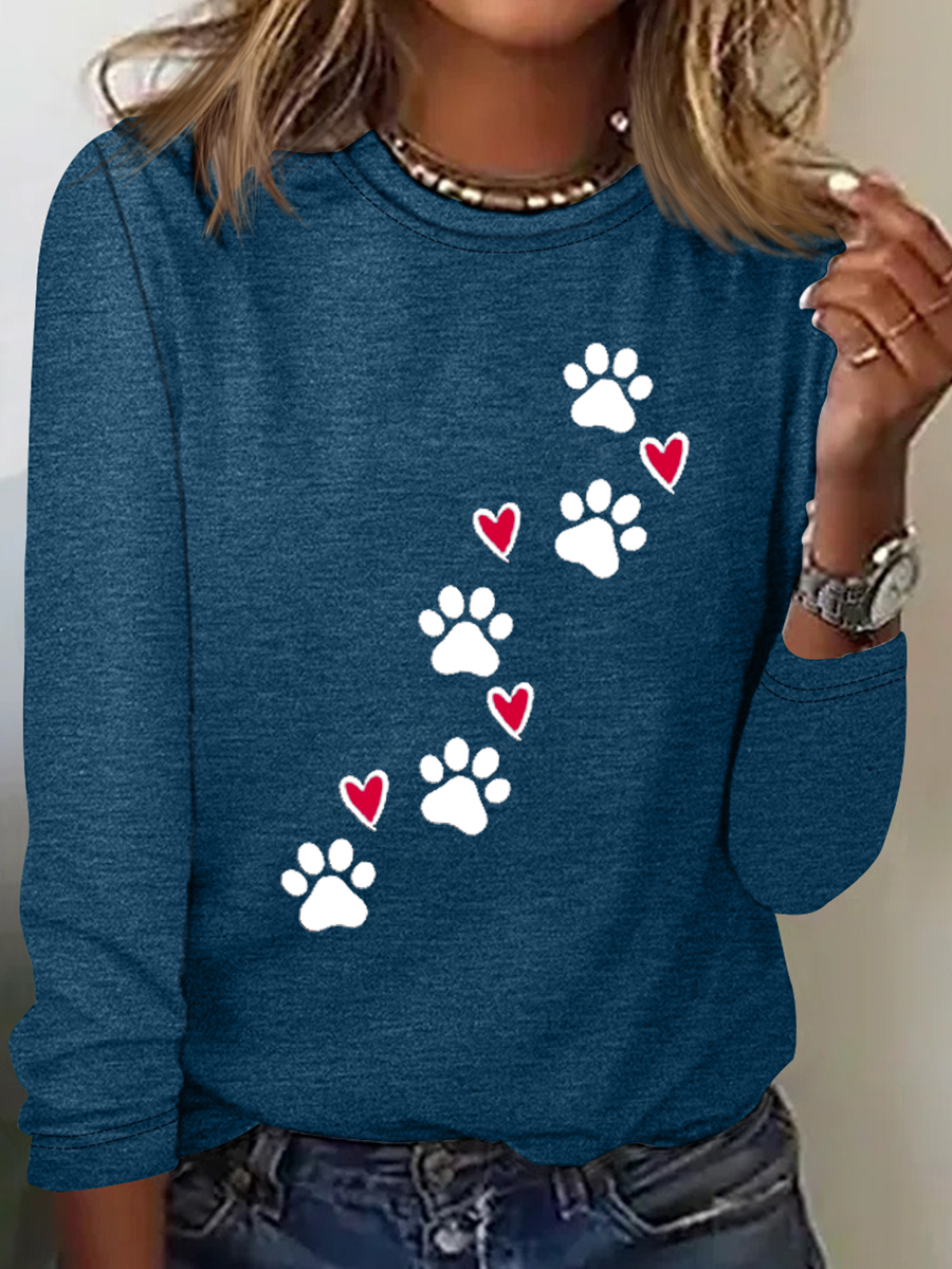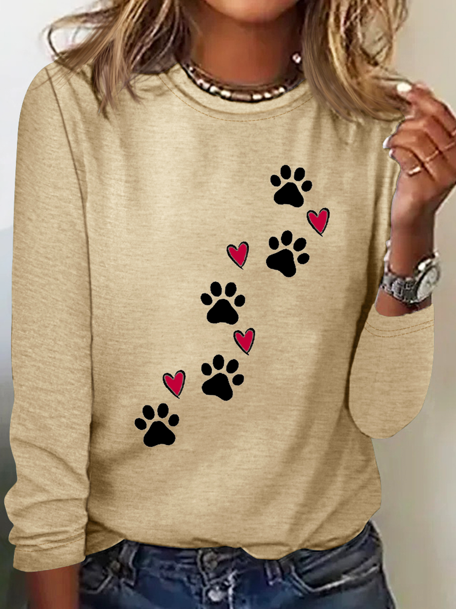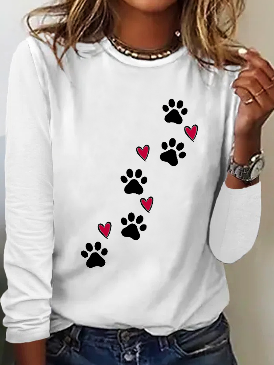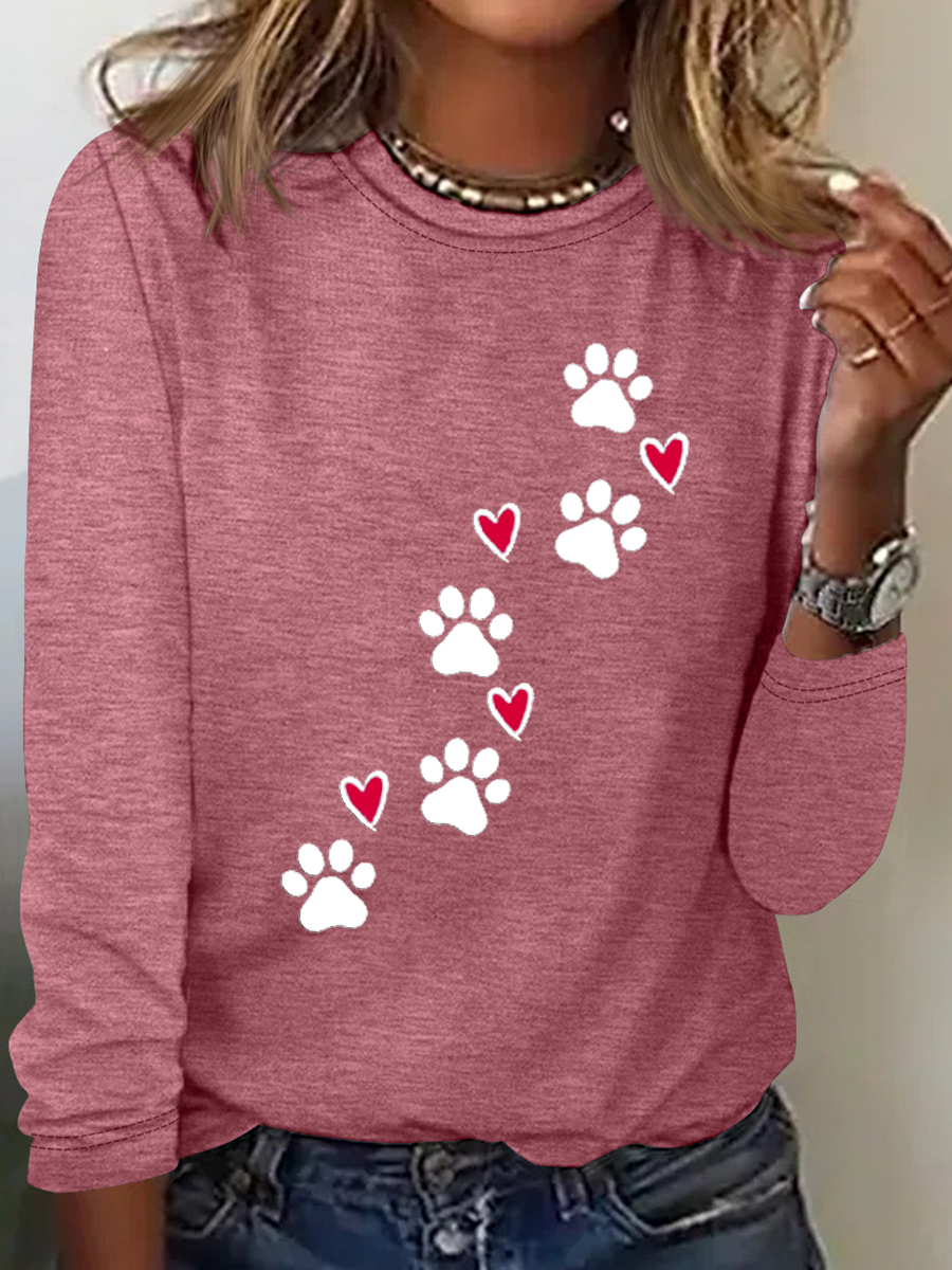 Heart Dog V Neck Text Letters Simple Long Sleeve Shirt