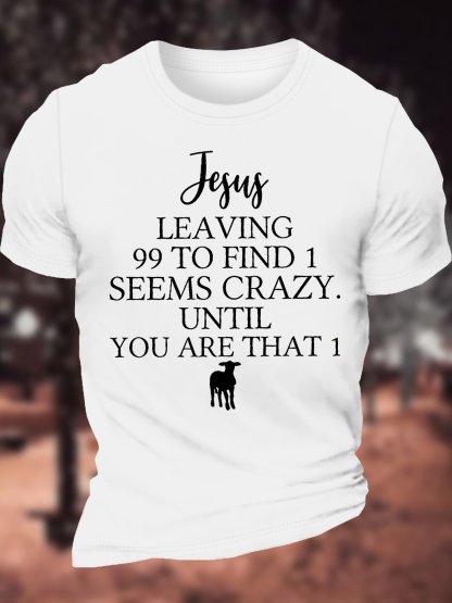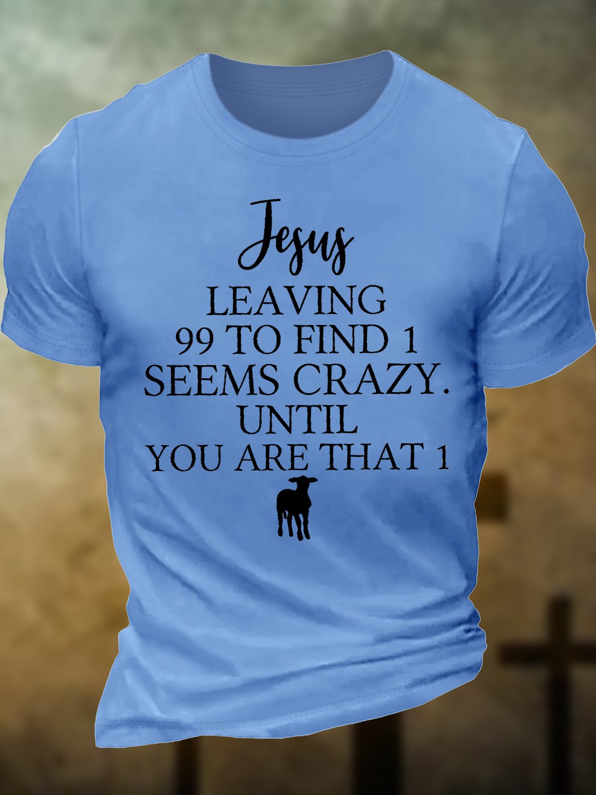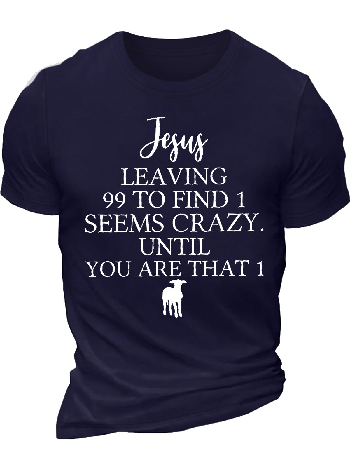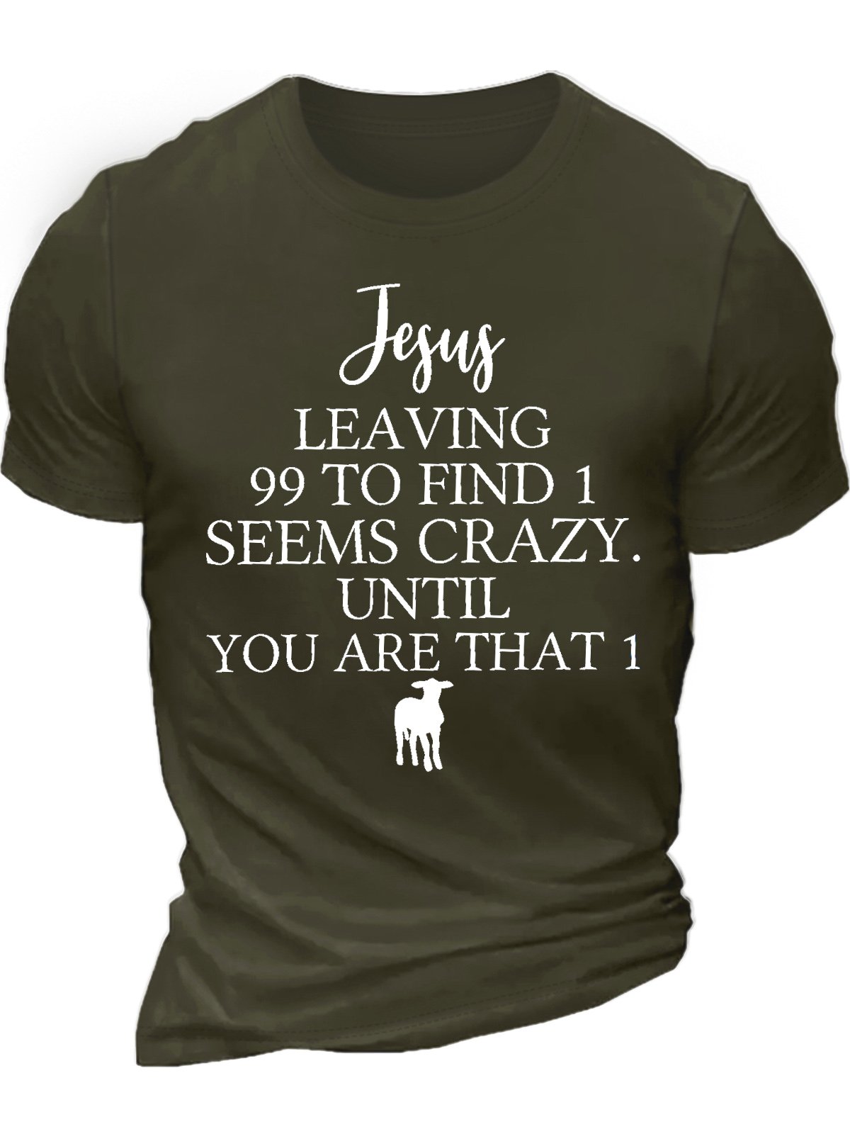 Men's Jesus Leaving 99 To Find 1 Seems Crazy Until You Are That 1 Funny Graphic Printing Casual Cotton Text Letters T-Shirt