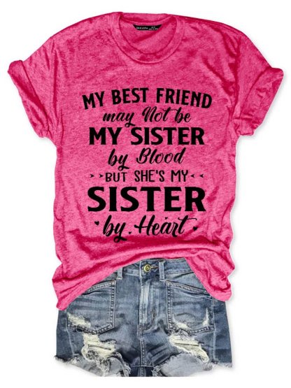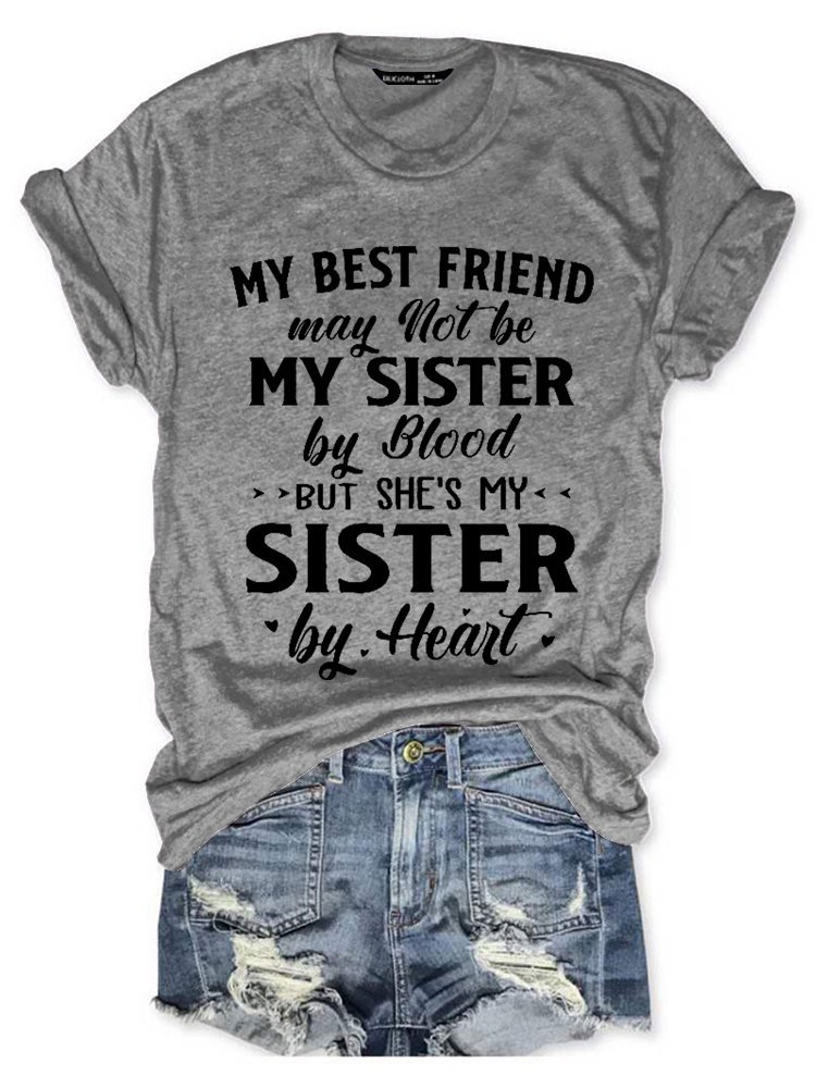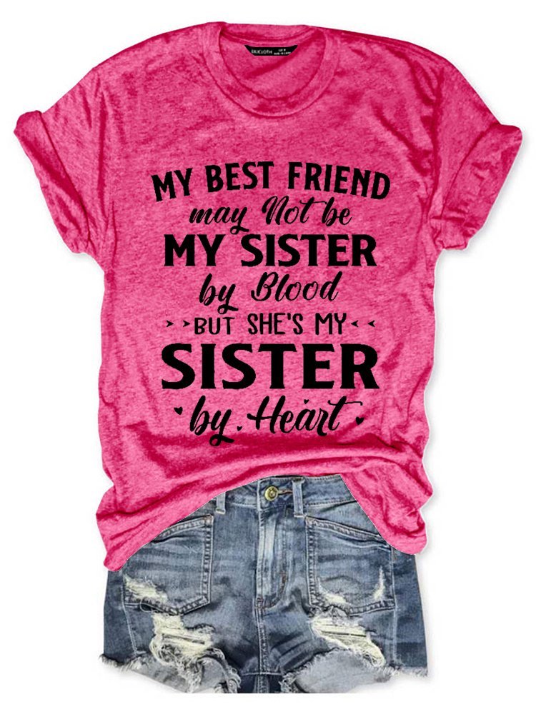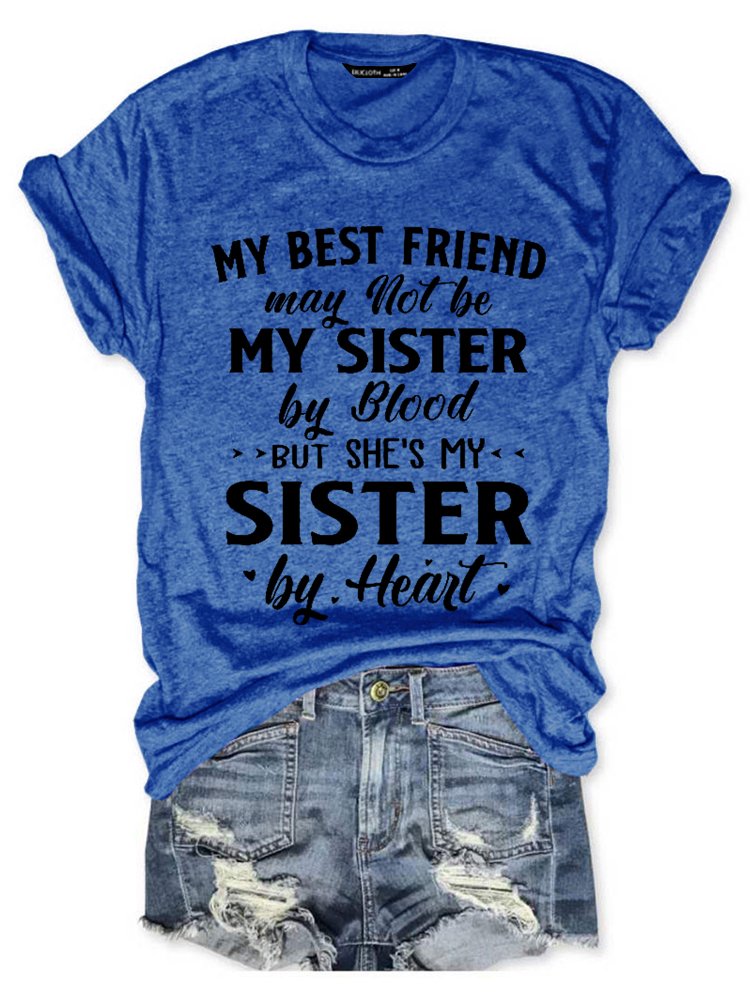 My Best Friend May Not Be My Sister By Blood But She's My Sister By Heart Cotton Blends Crew Neck Short Sleeve T-Shirt