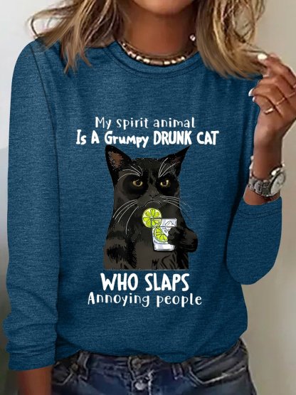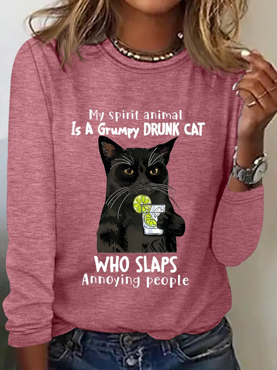 My Spirit Animal Is A Grumpy Drunk Cat Who Slaps Annoying People Sarcastic Long sleeve Shirt