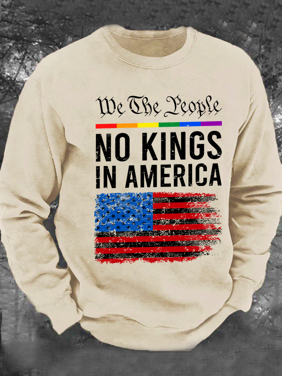 No Kings In America Casual Crew Neck Painting Sweatshirt