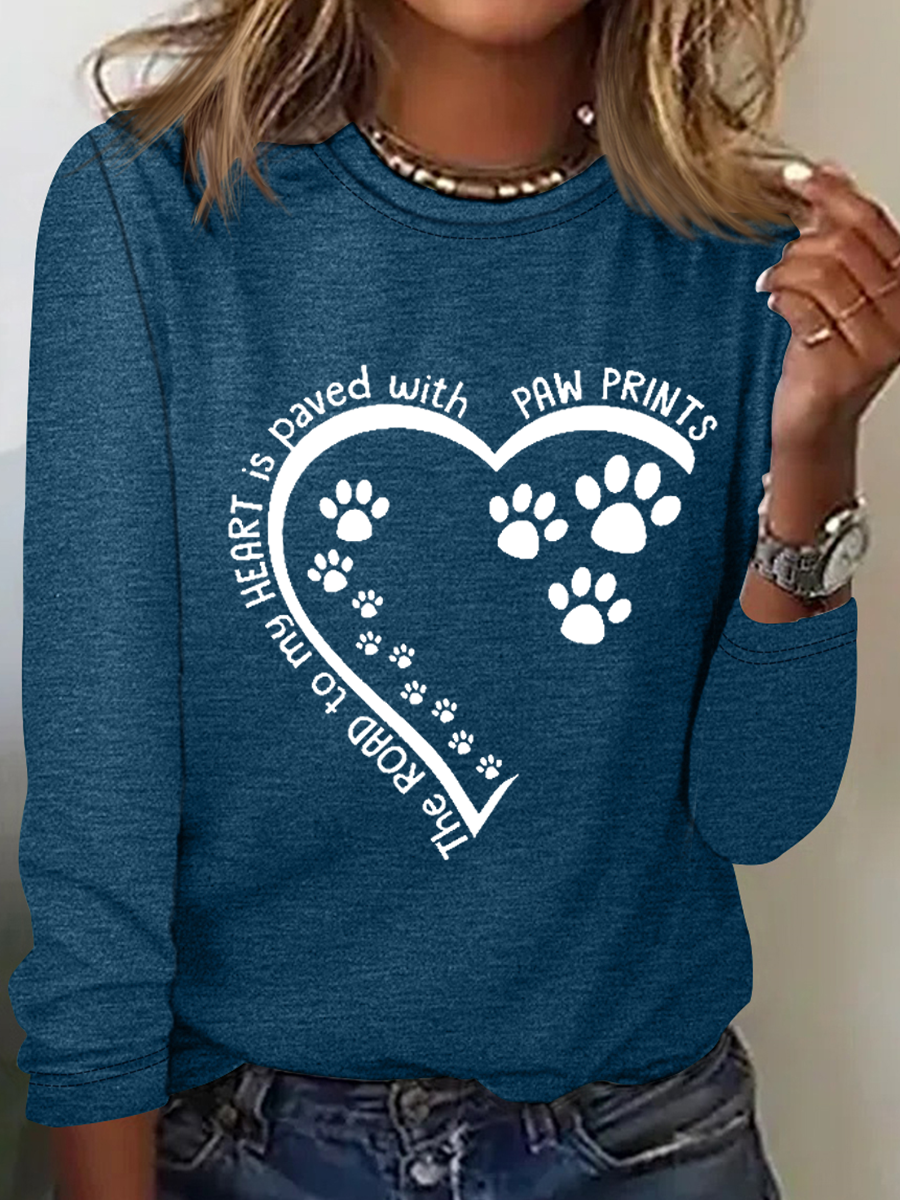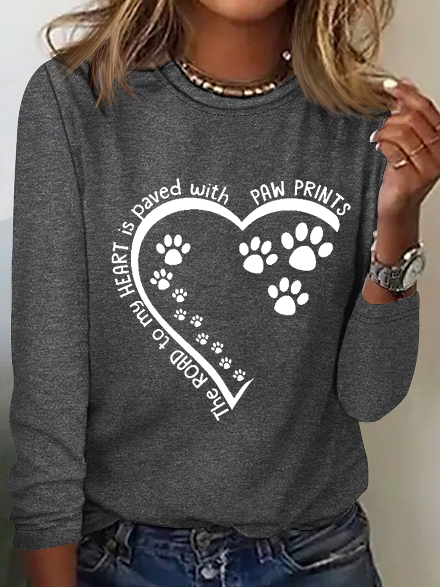 Women's Dog Lovers The Road To My Heart Is Paved With Paw Prints Text Letters Simple Long Sleeve Shirt