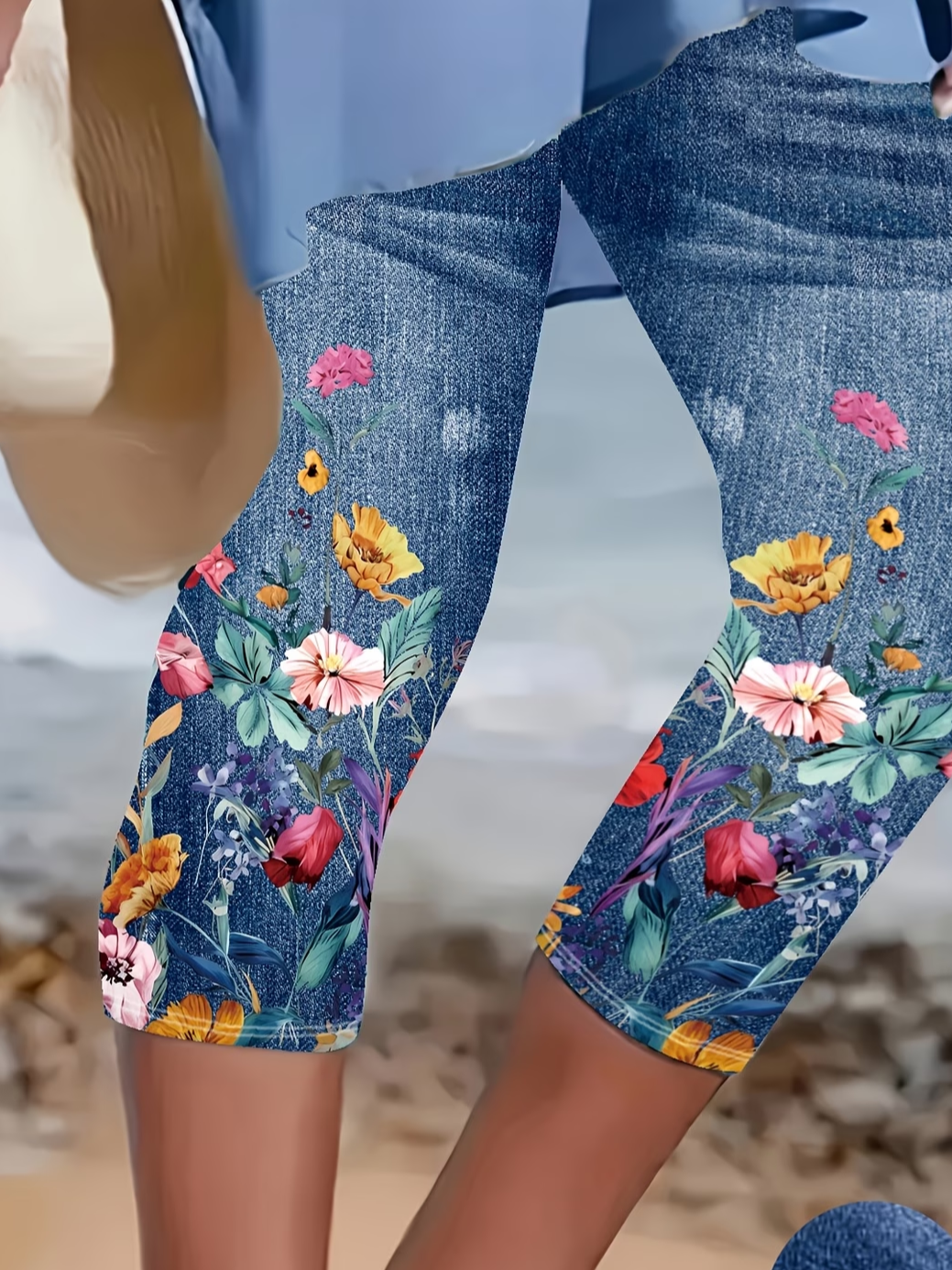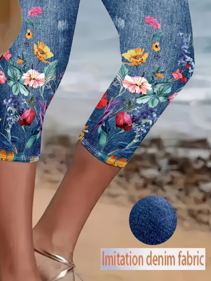 Women's Elastic Waist H-Line Legging Daily Going Out Pants Blue Casual Printing Faux Denim Print Graphic Summer Pants